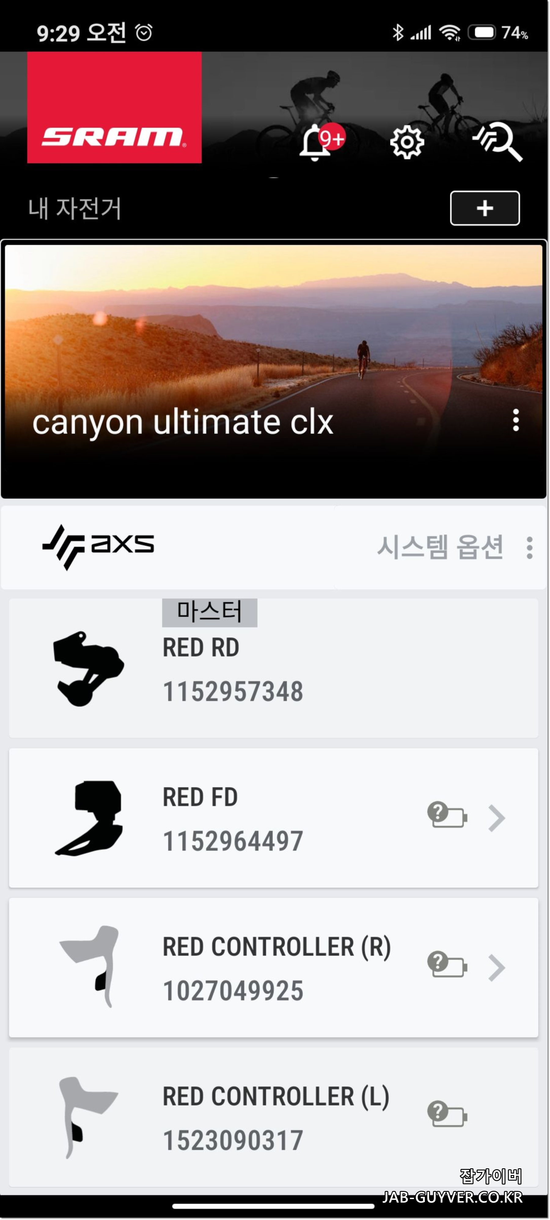 우선 스램 배터리의 잔량을 확인하기 위해 Sram AXS 앱을 실행해봅니다.
