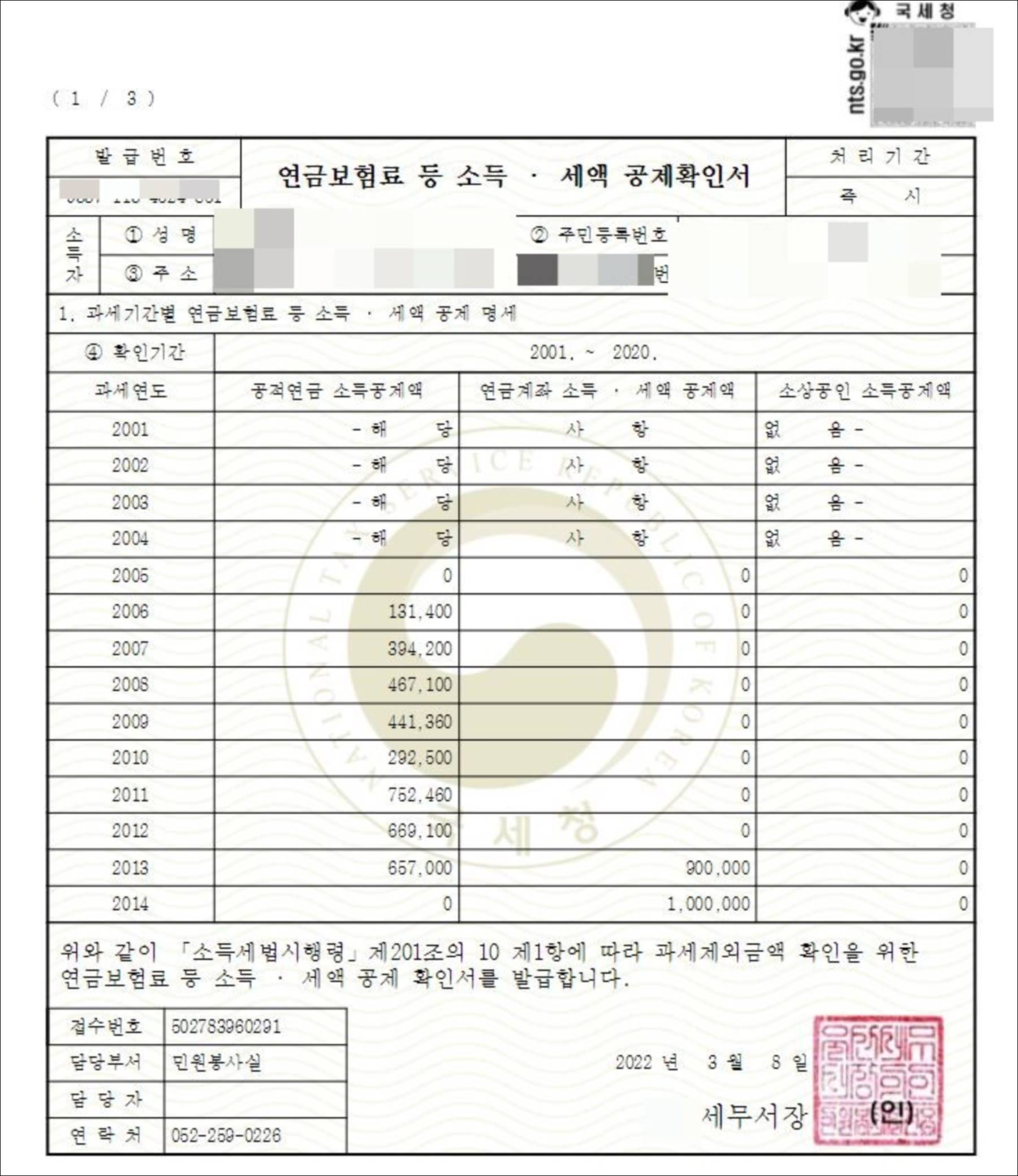 - 발급번호 클릭 후 출력을하면 연금보험료 소득세액 공제확인서 출력이 완료됩니다.