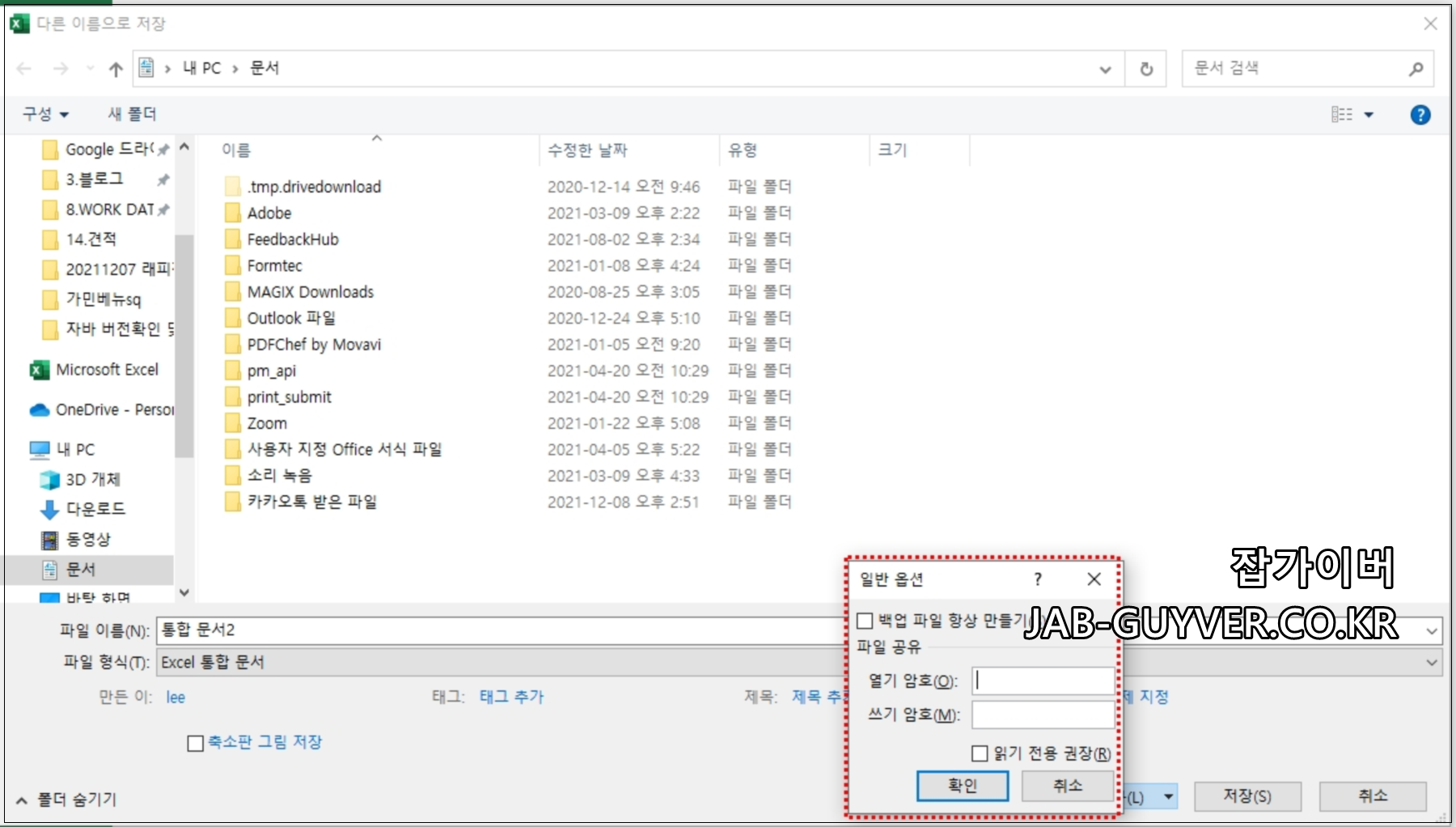 엑셀 자동저장 복구 및 암호저장 설정