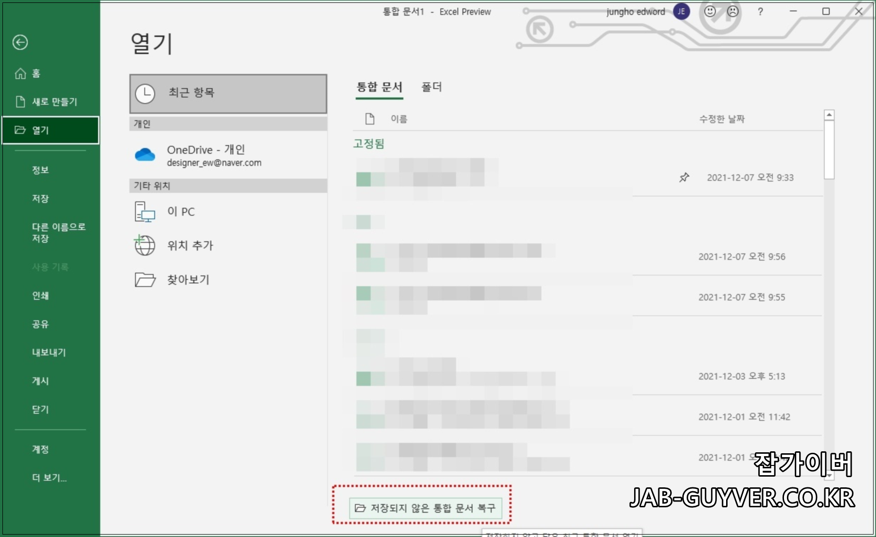 엑셀 저장되지 않은 문서복구