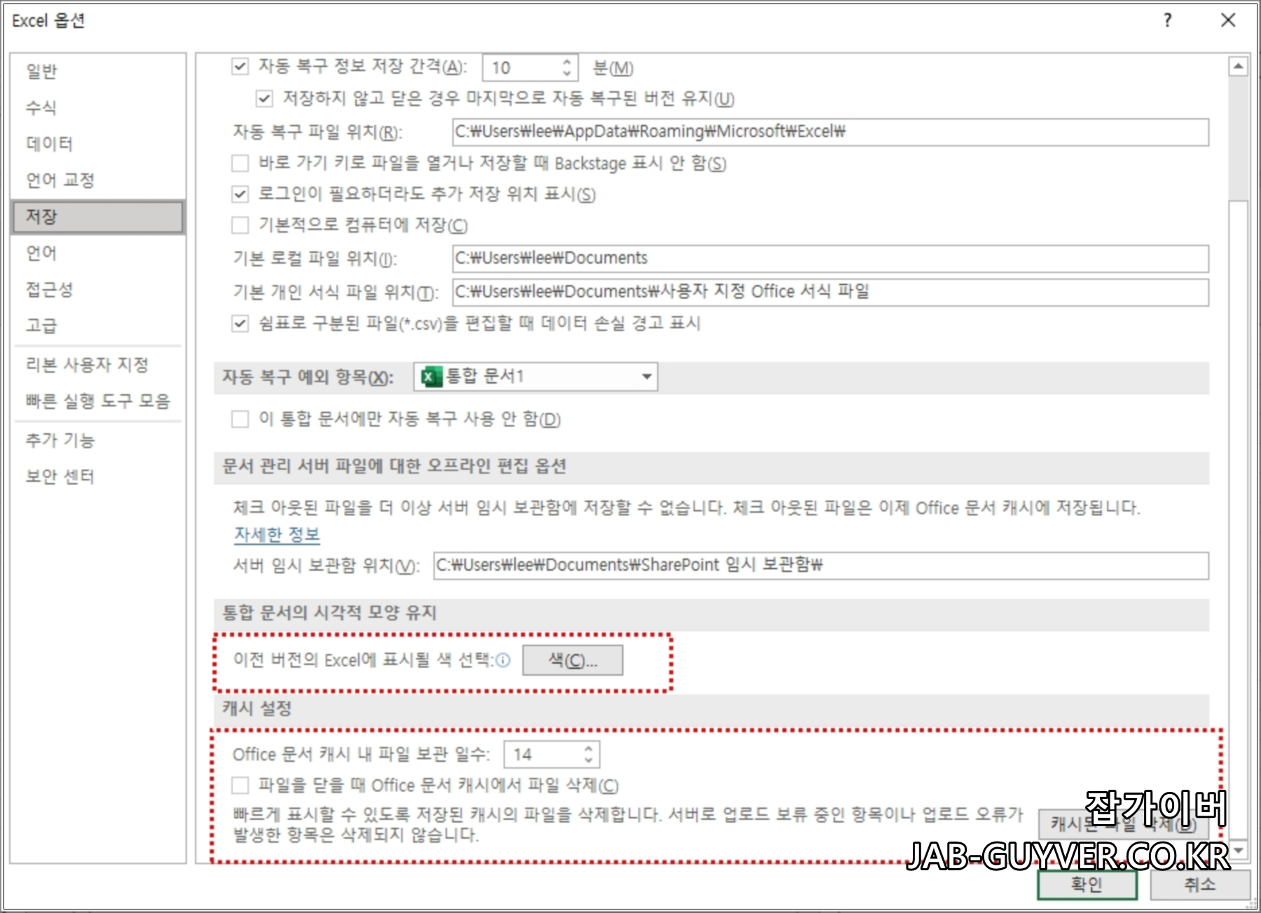 엑셀 자동저장 및 임시파일 저장경로