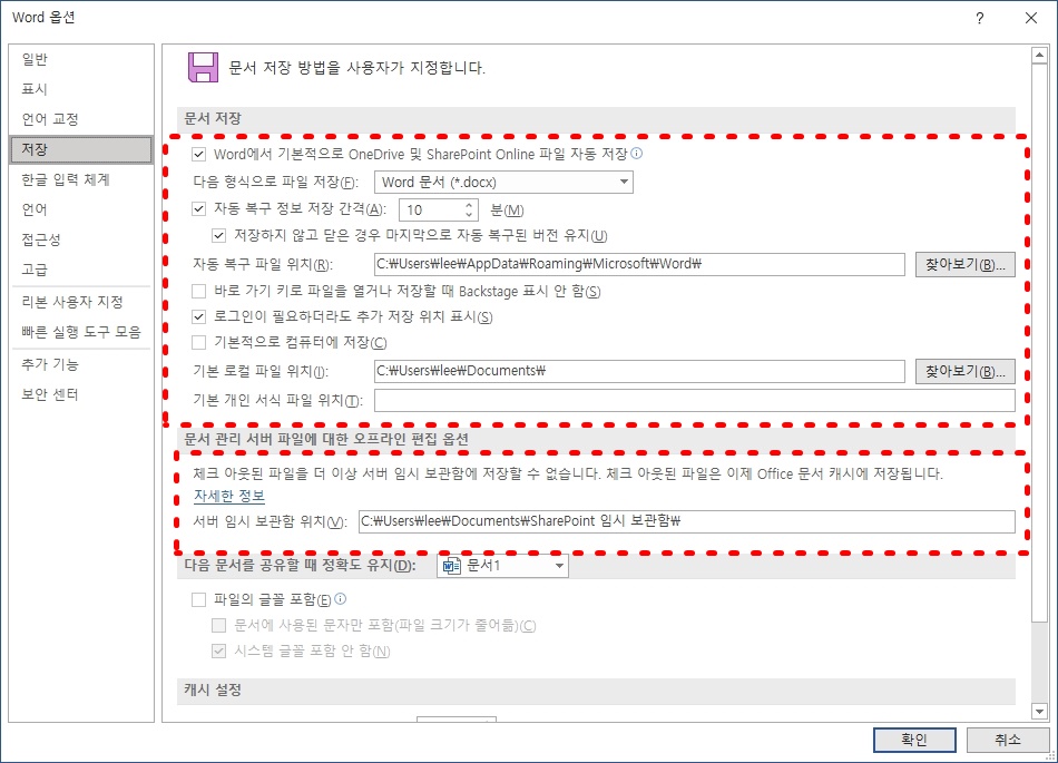 마이크로소프트 오피스 워드 임시파일 저장위치