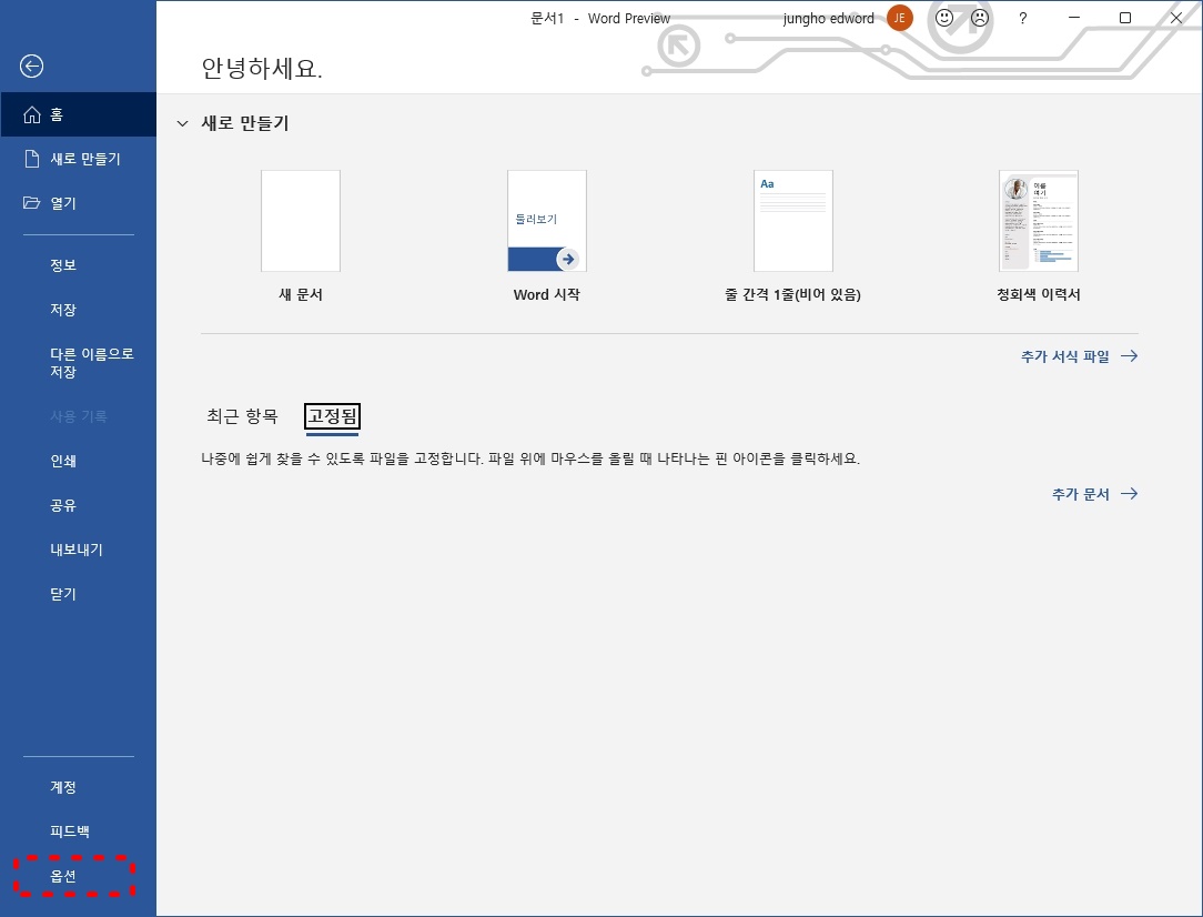 Word 프로그램을 실행 후 옵션으로 들어갑니다.