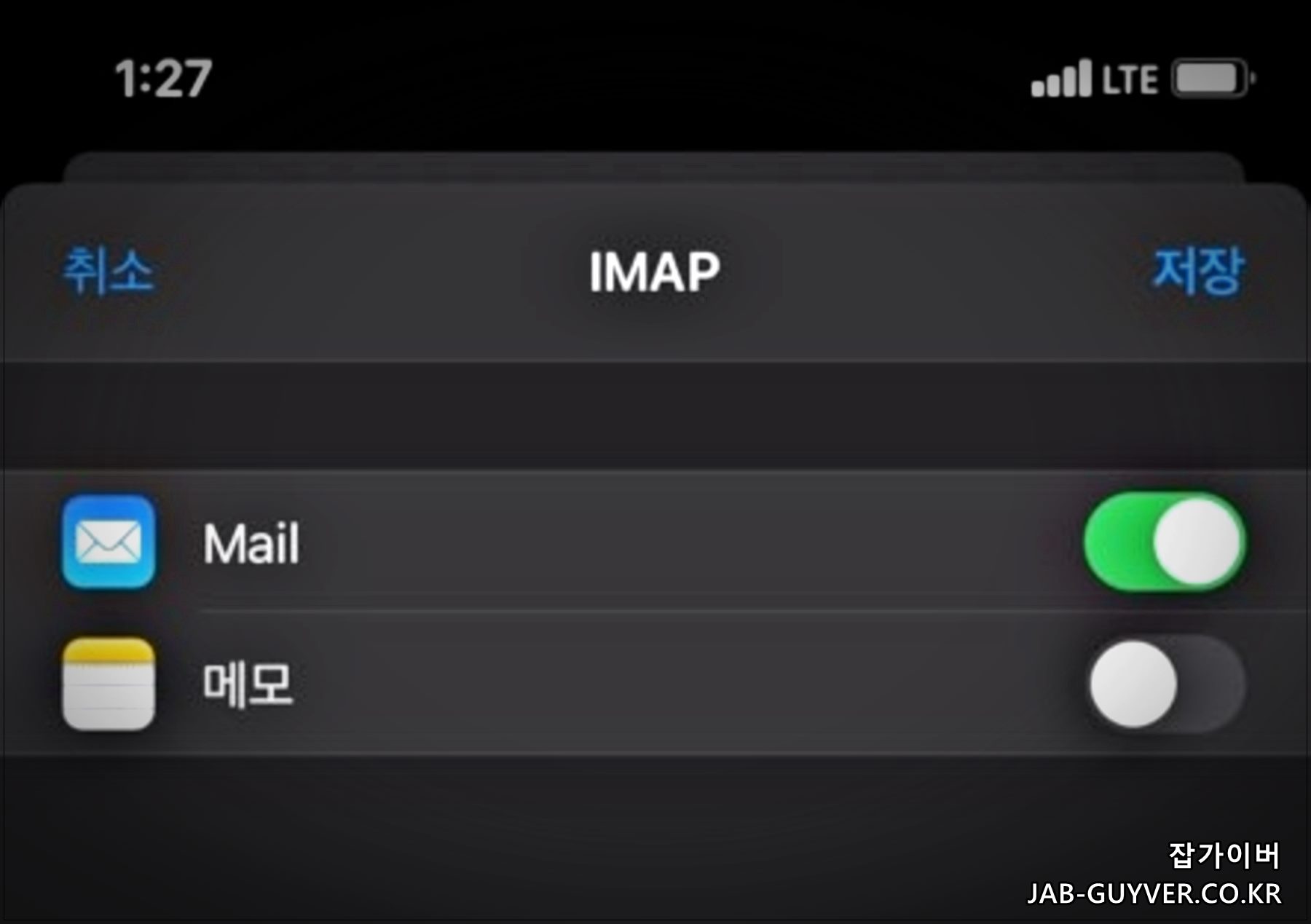 우선 IMAP / SMTP 설정으로 가서 사용안함을 사용함으로 체크합니다.