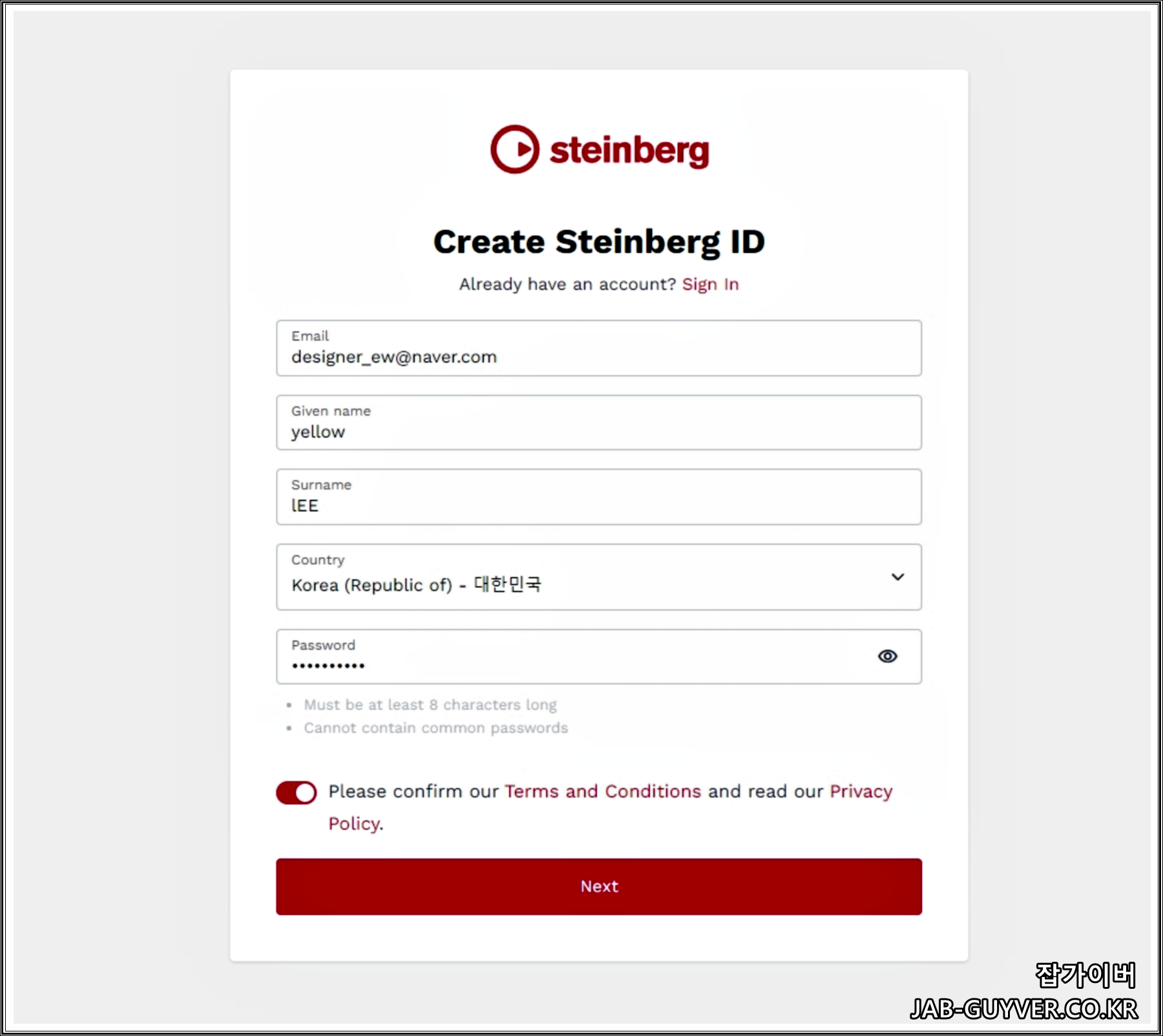 Cubase 계정 생성 – Steinberg ID 회원가입