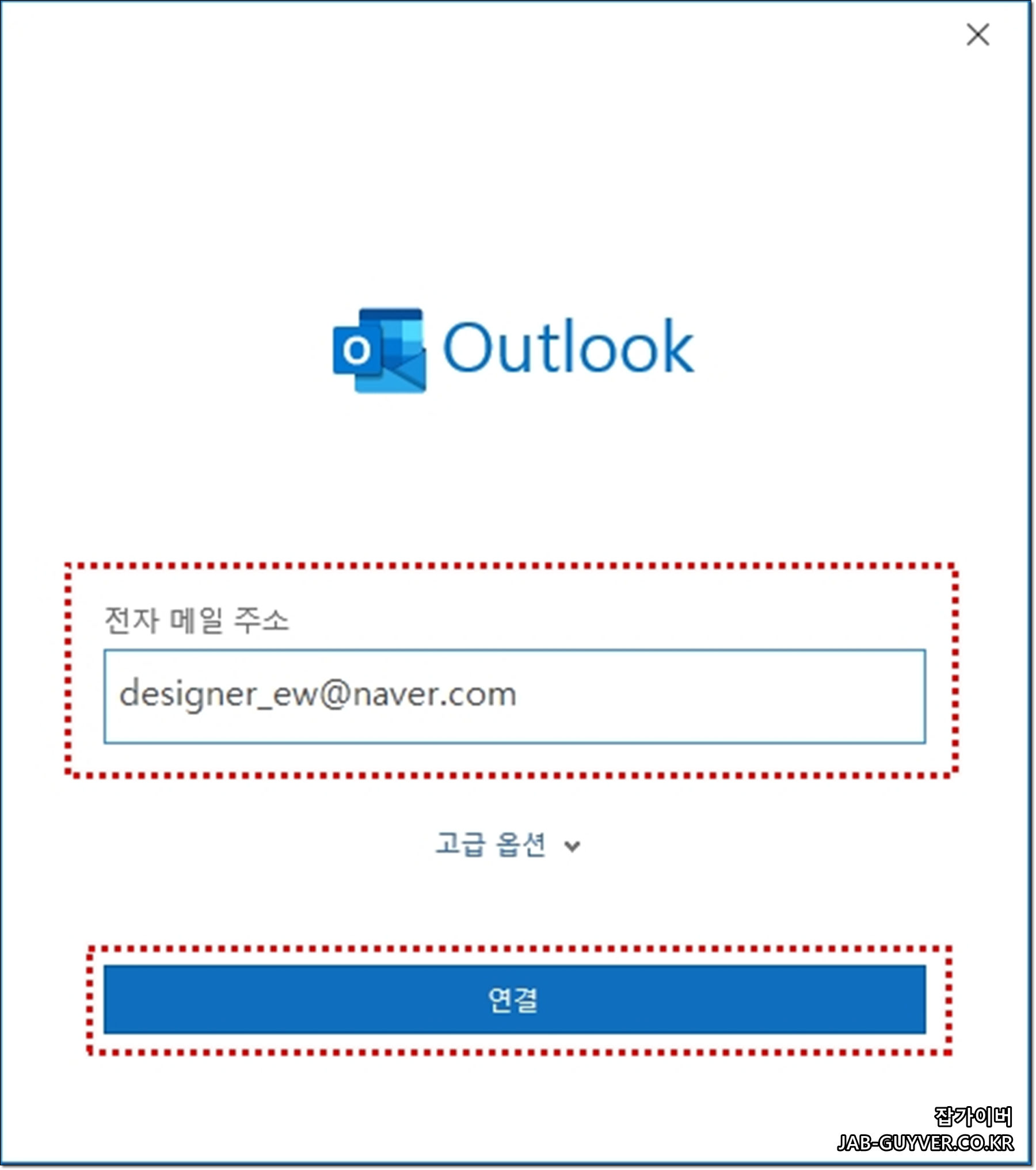 해당방법으로 메일연동이 되지 않는다면 고급옵션을 선택해서 IMAP / POP 방법을 통해 메일연결이 가능하며 자세한 내용은 아래 참고하세요