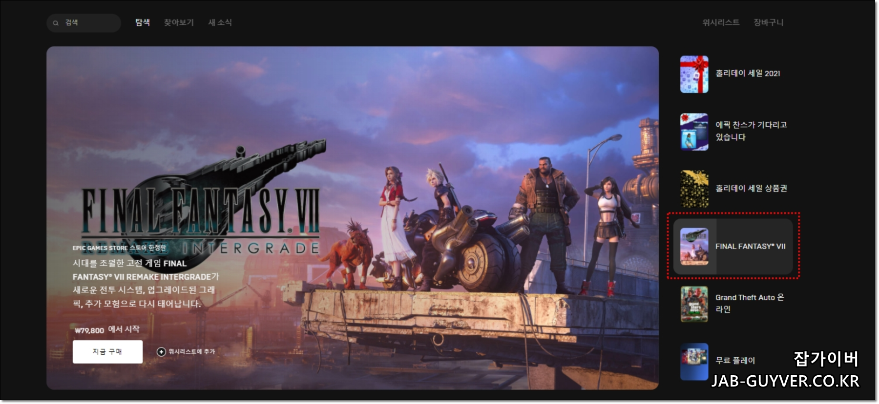 파이널판타지7 리메이크 인터그레이드 다운로드 받기 위해서는 에픽게임즈 런쳐를 다운로드 받아 설치해야합니다.