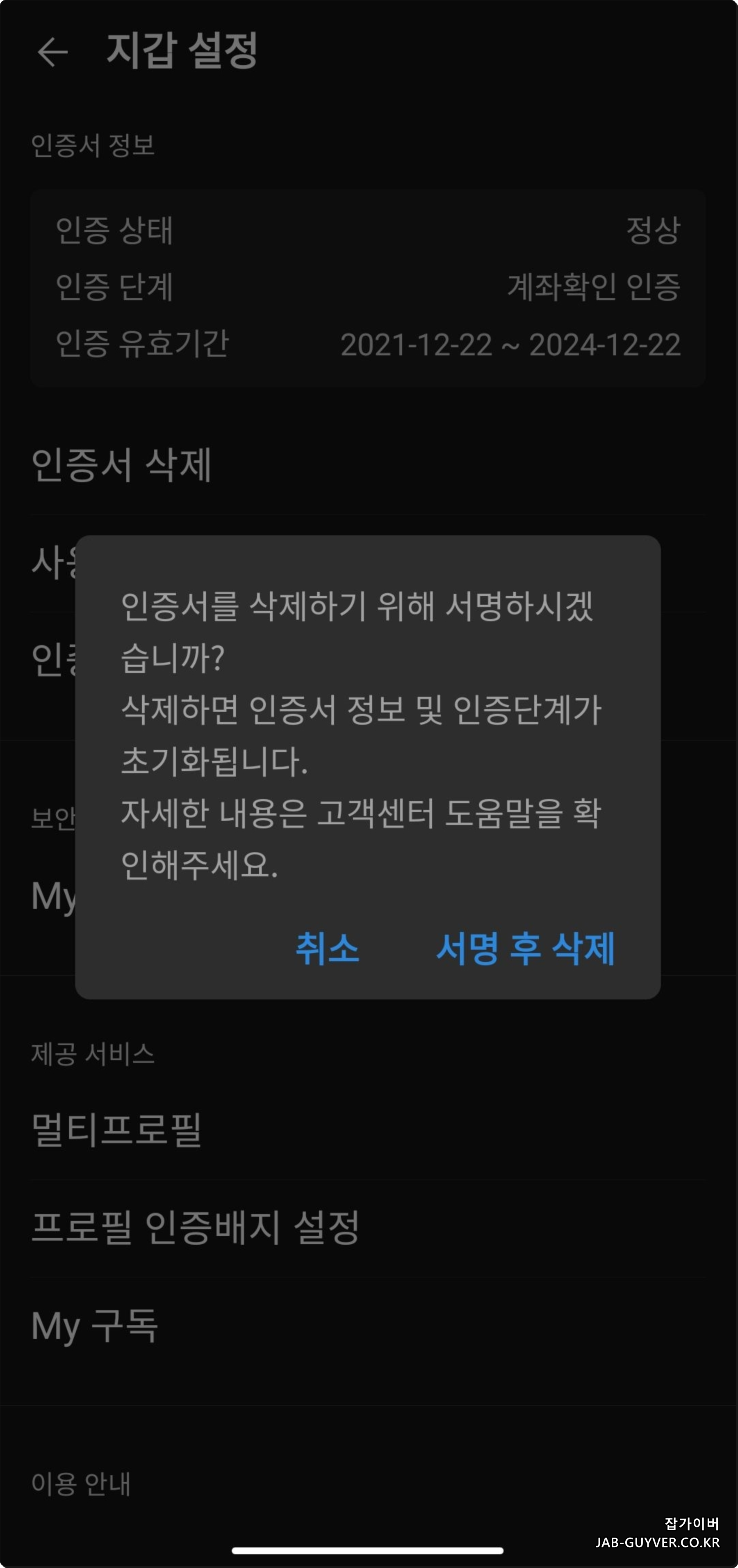 더이상 인증서 사용이 없는경우 보안을 위해서는 카카오페이 금융인증서 삭제를 하느것이 좋습니다.