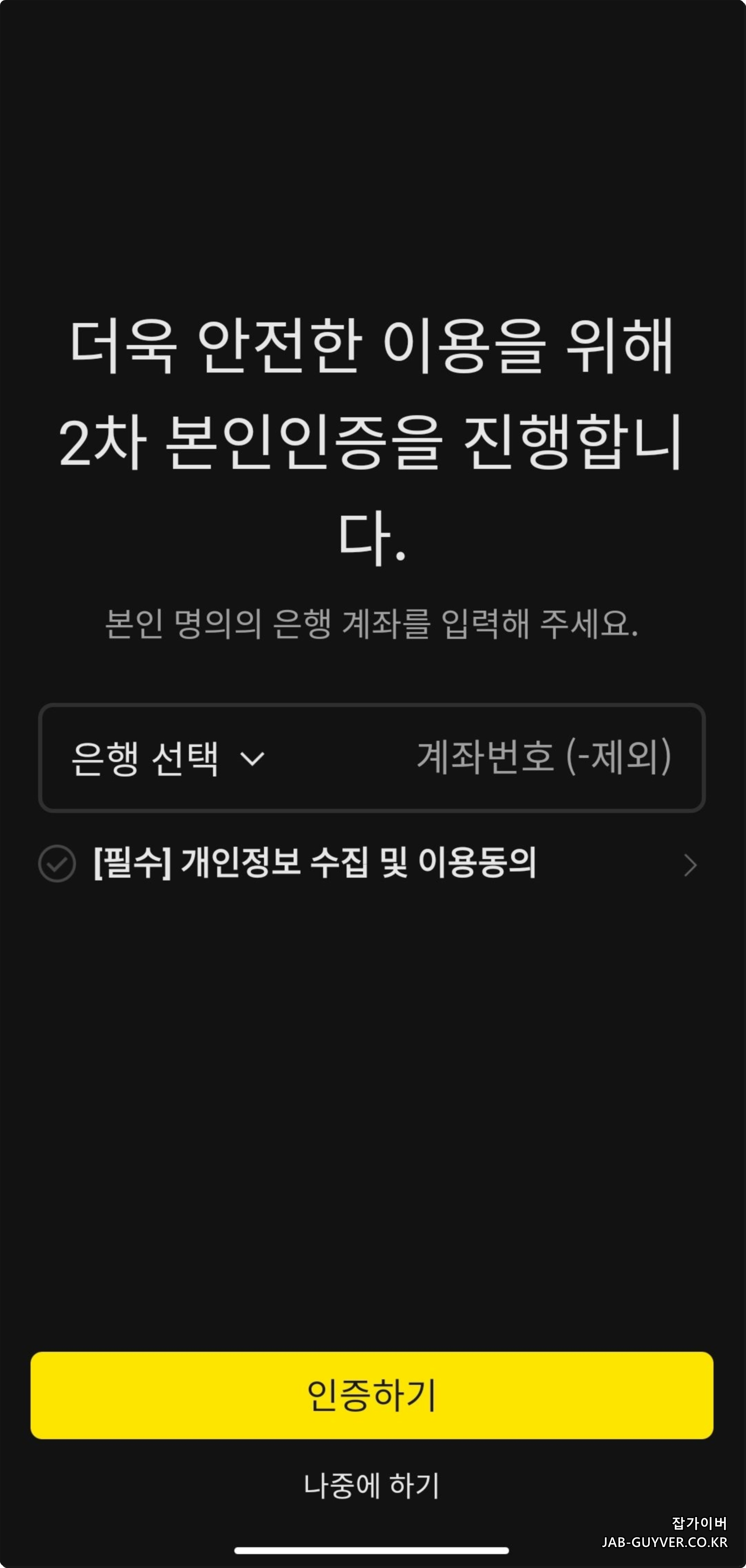 하지만 본인명의가 아닌 경우 신용카드 / 체크카드등을 통해 본인인증을 진행합니다.