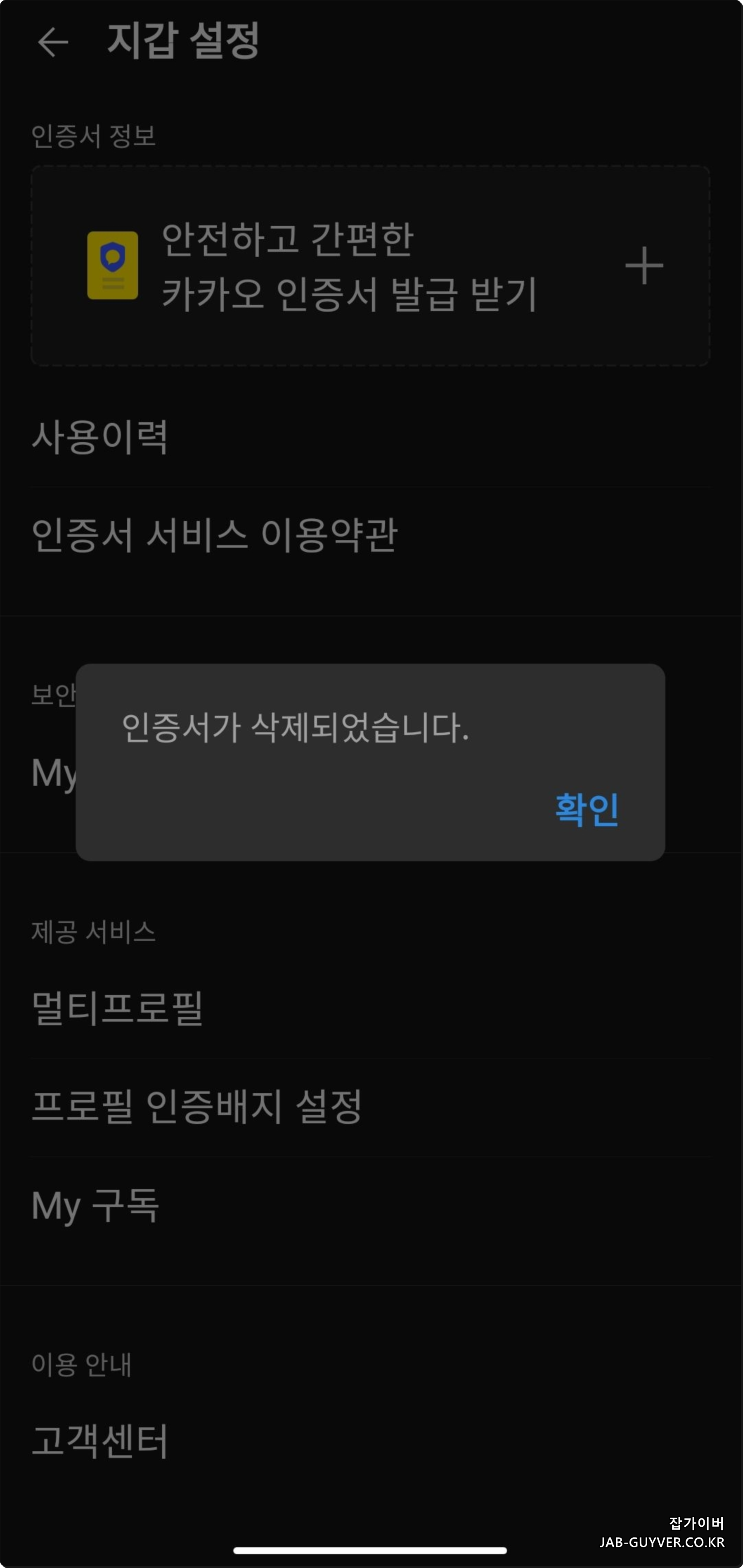 더이상 인증서 사용이 없는경우 보안을 위해서는 카카오페이 금융인증서 삭제를 하느것이 좋습니다.