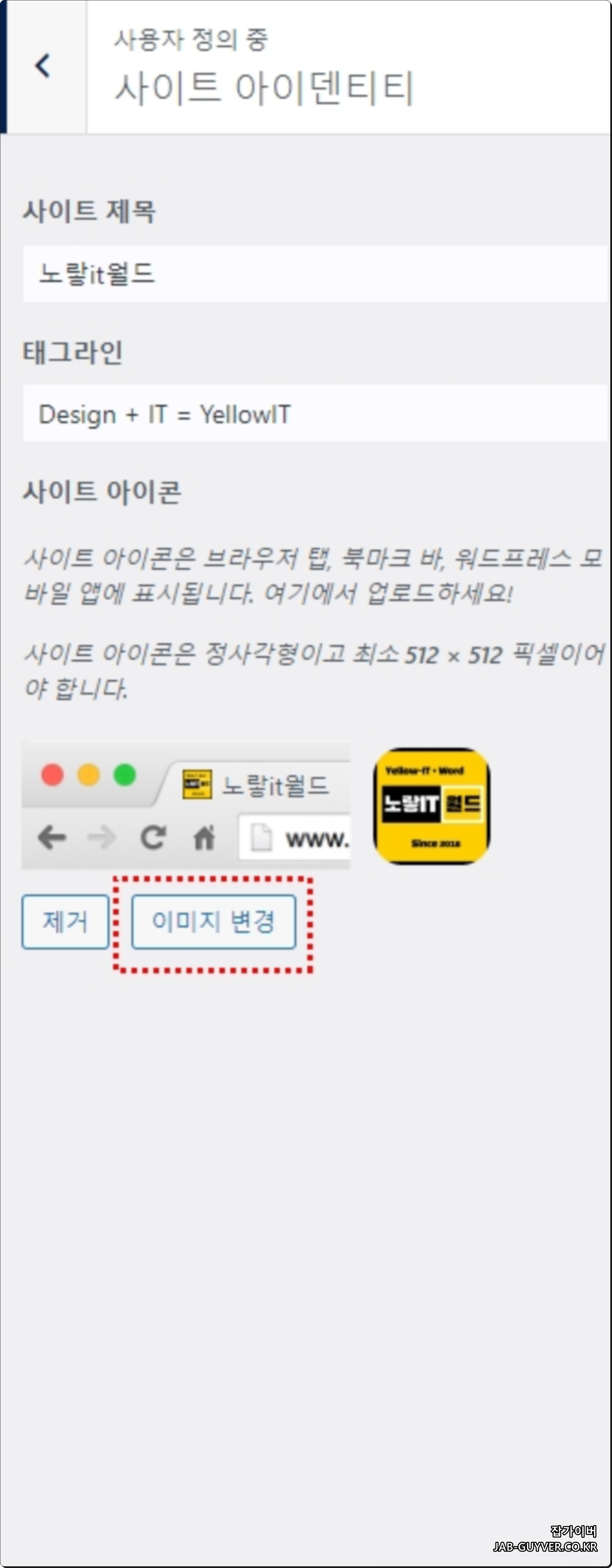 워드프레스 로고 및 파비콘 설정방법 - 사이트제목 추가