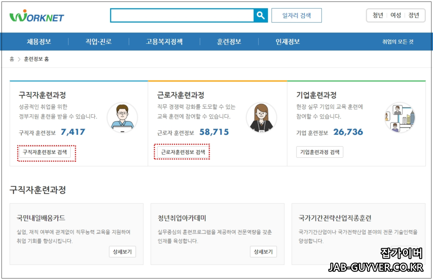 필요한다면 구직자 훈련과정으로 국민내일배움카드와 청년취업아카데미, 국가기간전략산업 직종훈련도 가능합니다.