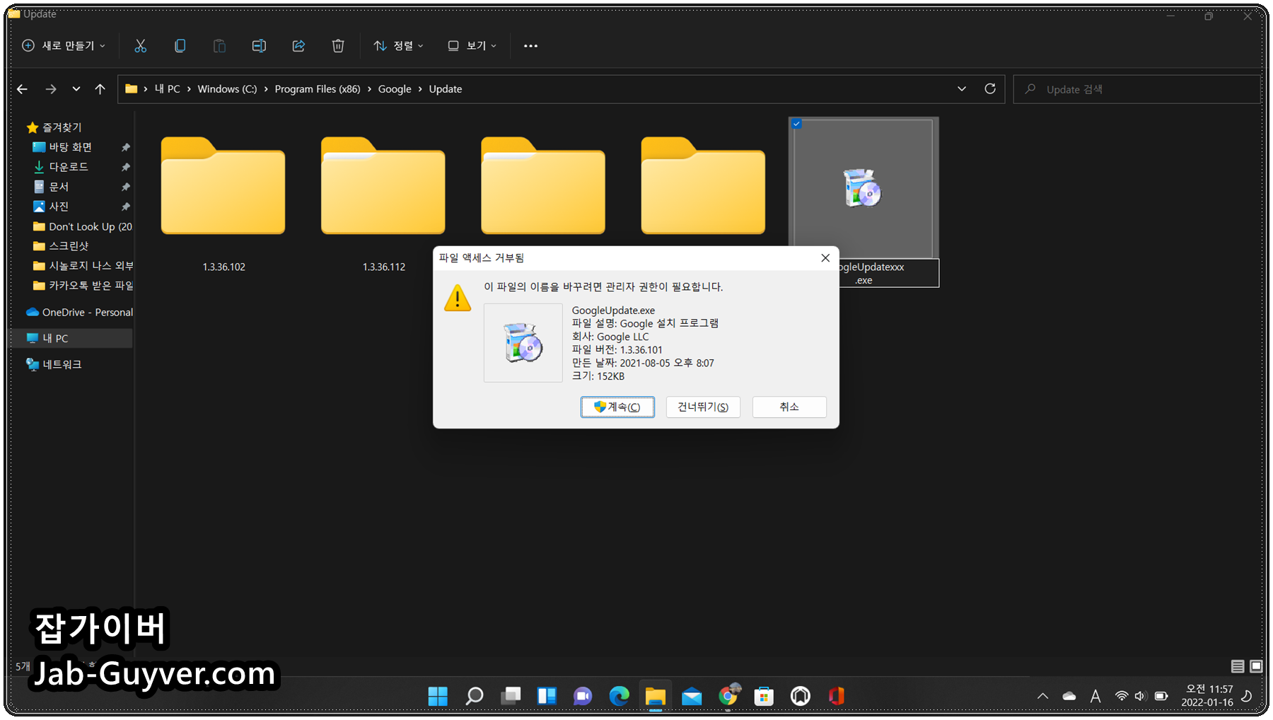위 경로로 들어가면 GoogleUpdate.exe 파일을 볼 수 있습니다.