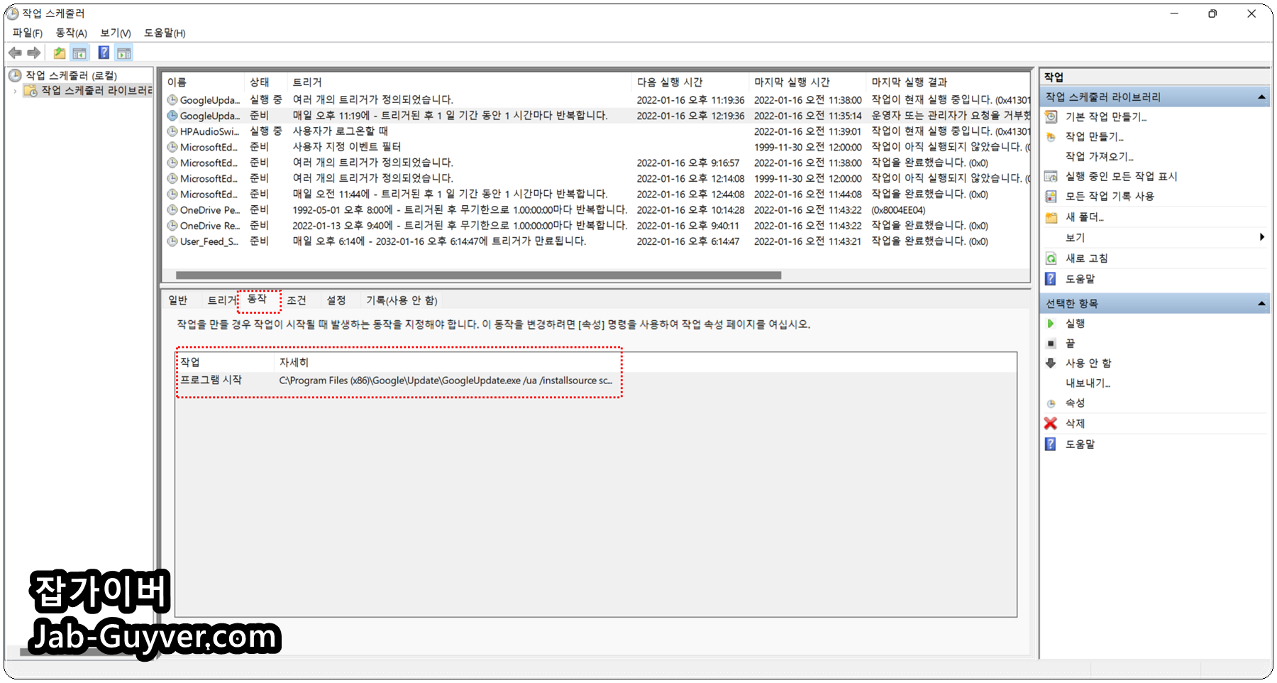 이렇게 크롬 업데이트를 차단하고 난 뒤 동작에 보면 프로그램 시작에서 크롬 업데이트 파일의 위치를 확인할 수 있습니다.