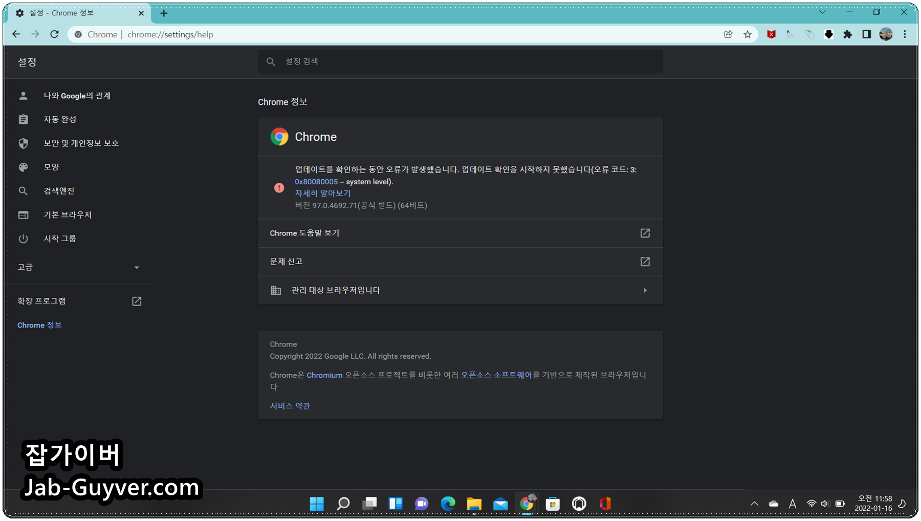 업데이트를 확인하는 동안 오류가 발생했으며 구글 크롬 업데이트 확인을 시작하지 못했습니다.