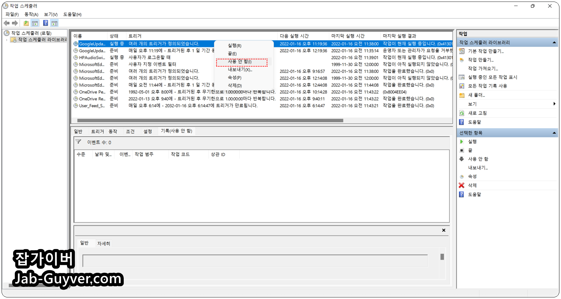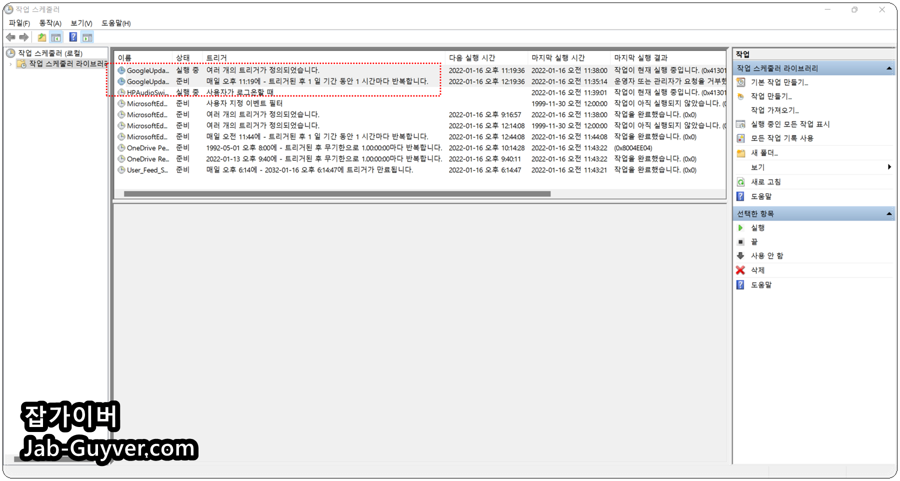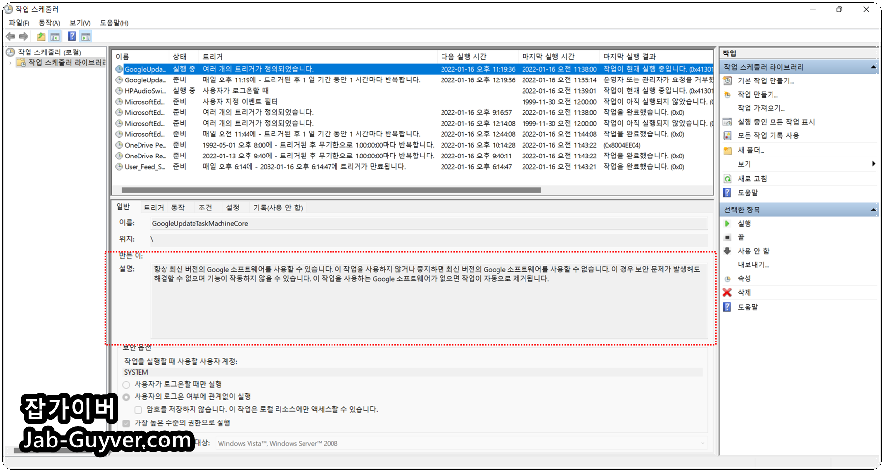 이러한 크롬 자동업데이트 끄기위해서는 작업스케쥴러에서 2가지 항목을 선택 합니다.