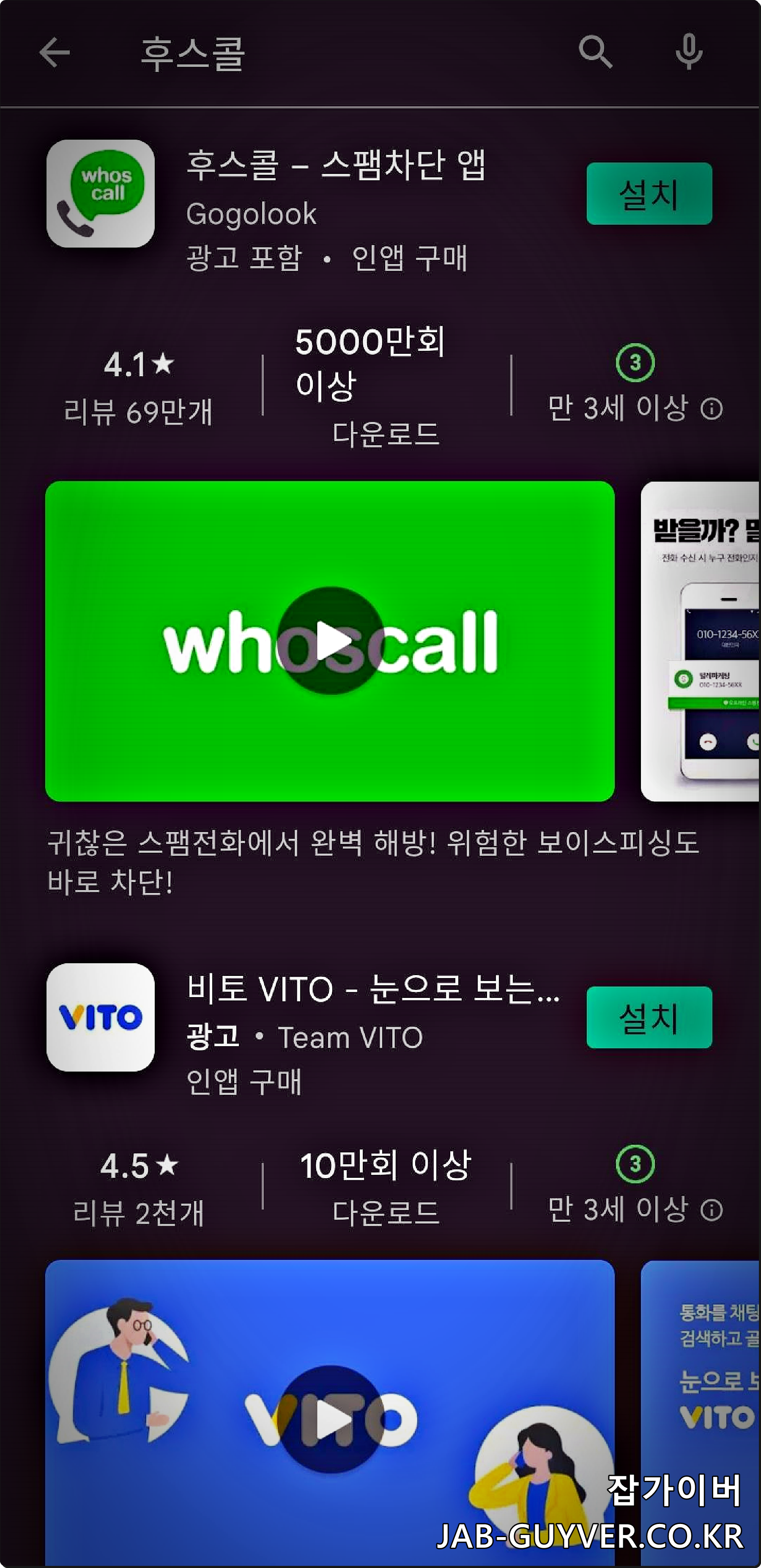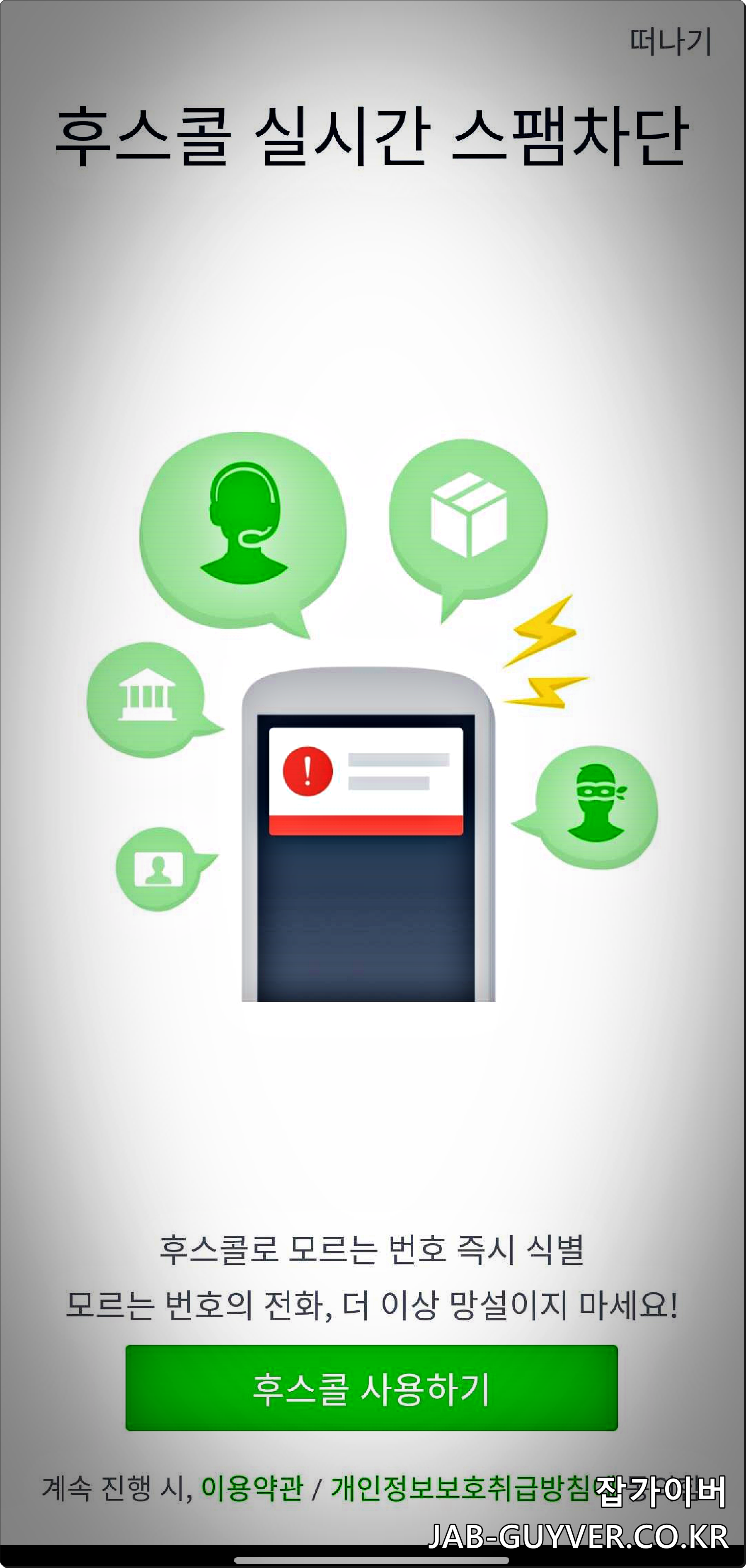 그리고 추가로 후스콜과 같은 실시간 전화 및 문자 차단앱을 설치합니다.