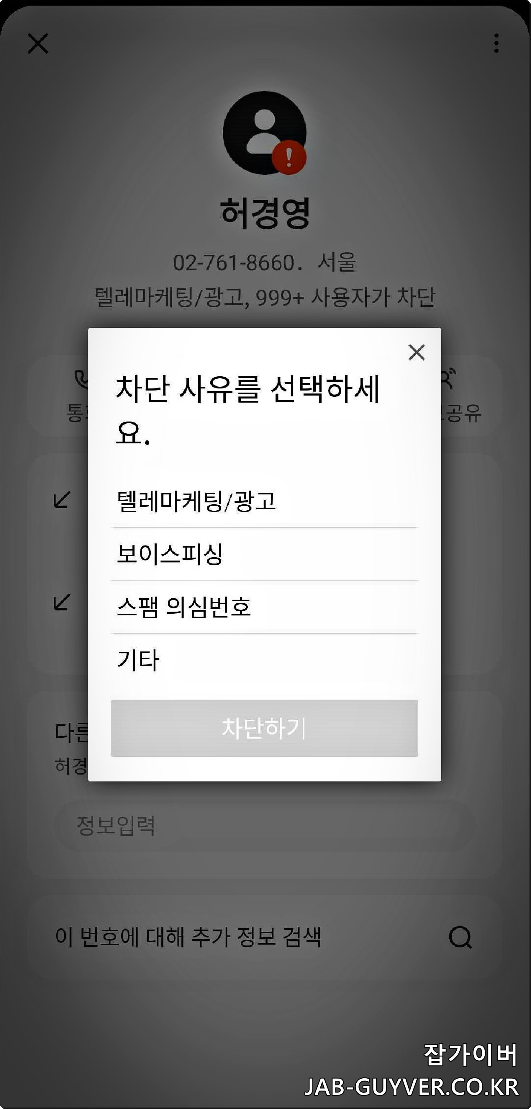 6. 허경영 스팸 전화번호를 차단하려면 어떻게 해야 하나요?