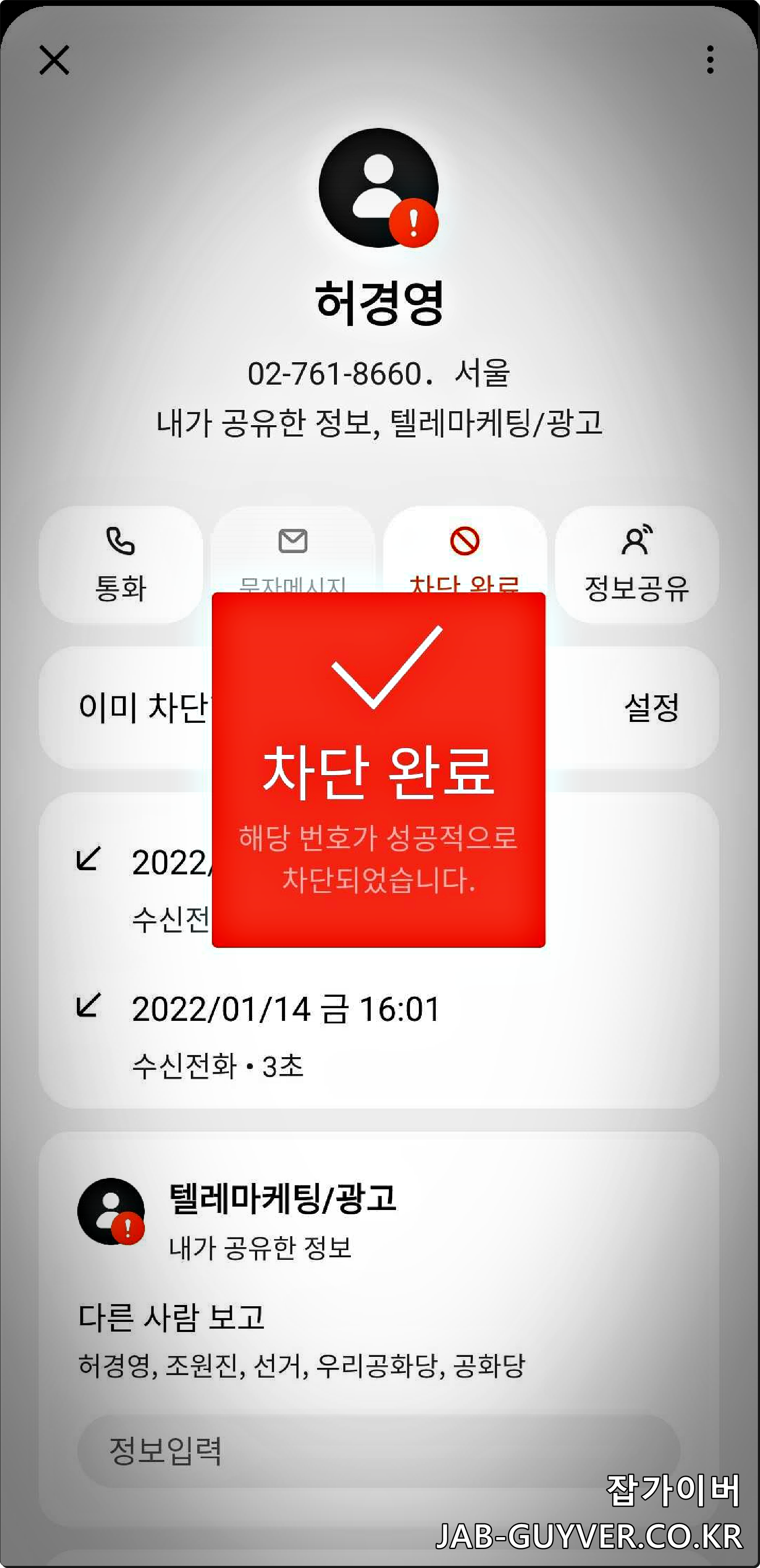 - 답변: 허경영과 관련된 스팸 전화번호(예: 02-761-8660)는 전화번호 차단 기능을 통해 차단할 수 있습니다. 해당 번호를 전화 앱에서 차단하고, 스팸 전화 차단 앱을 설치하여 실시간으로 추가 차단을 설정하는 것이 좋습니다.