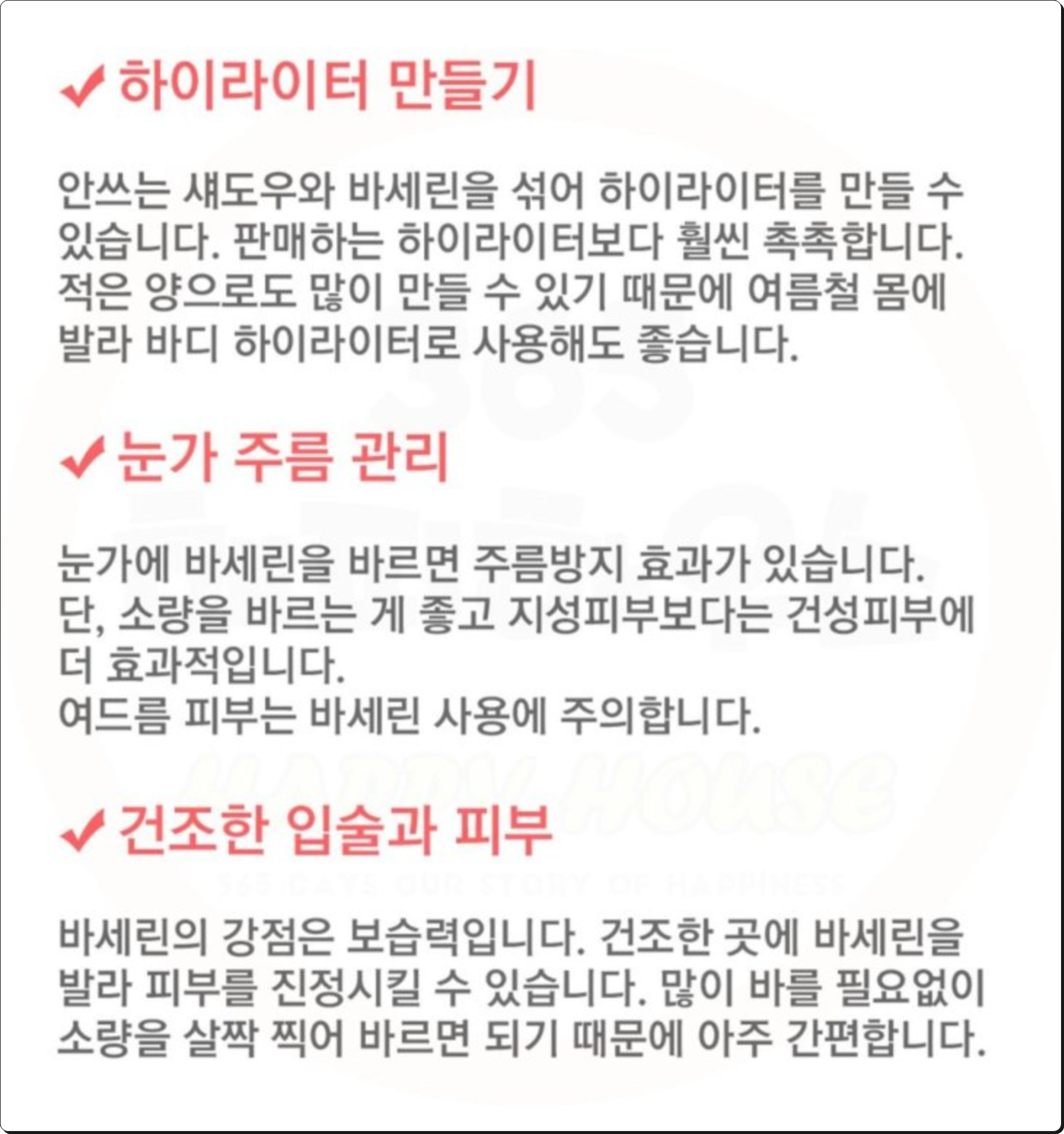 겨울철 건조한피부 바세린 효과 및 독성 주의사항