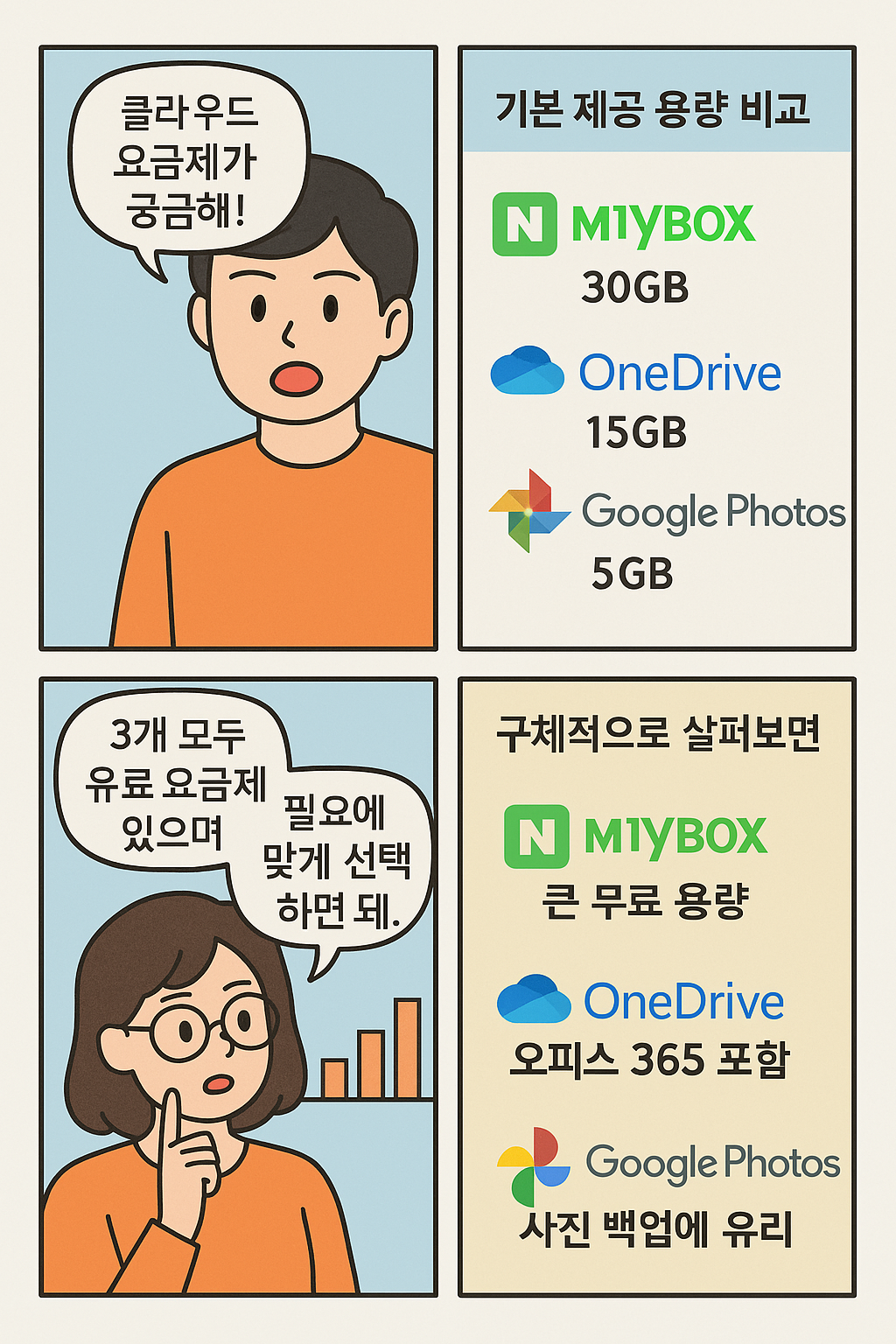클라우드 뭐 쓸까? 네이버 마이박스·구글·원드라이브·iCloud 요금제 비교