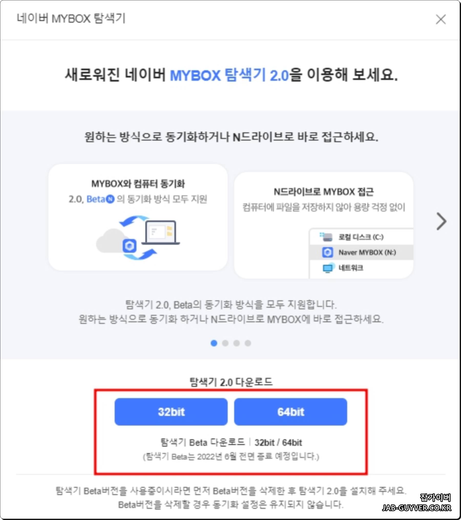 윈도우 환경에서는 위 설치 파일을 이용해 바로 설치하면 되고, MacOS를 사용한다면 네이버 Mybox 웹사이트에서 별도의 맥용 설치 파일을 받을 수 있습니다.