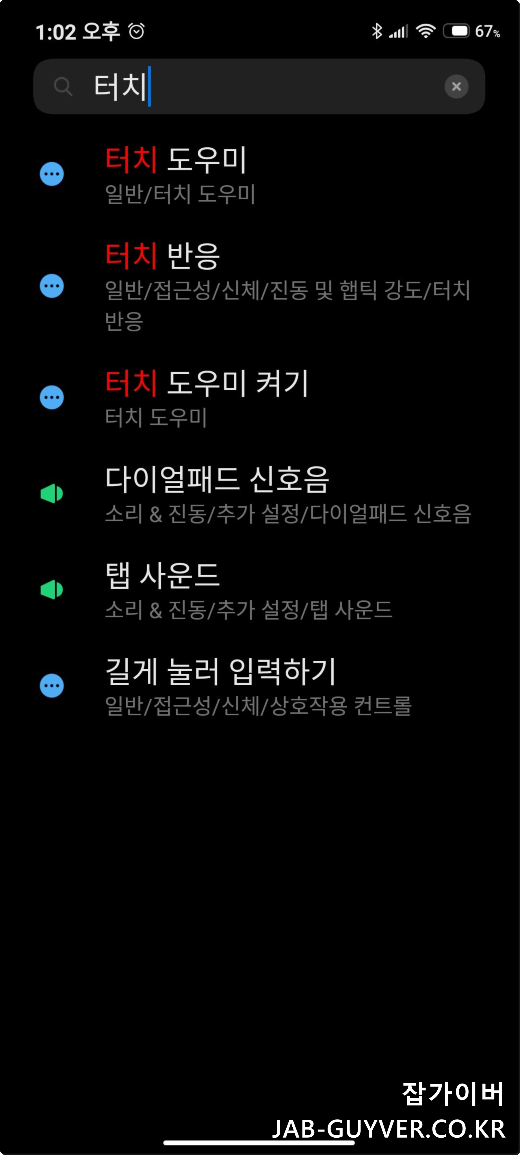 그럼 터치영역이 넓어져서 터기가 힘든 경우 쉽게 사용이 가능하며 시력이 좋지 못한 부모님들에게도 추천하는 설정 방법입니다.
