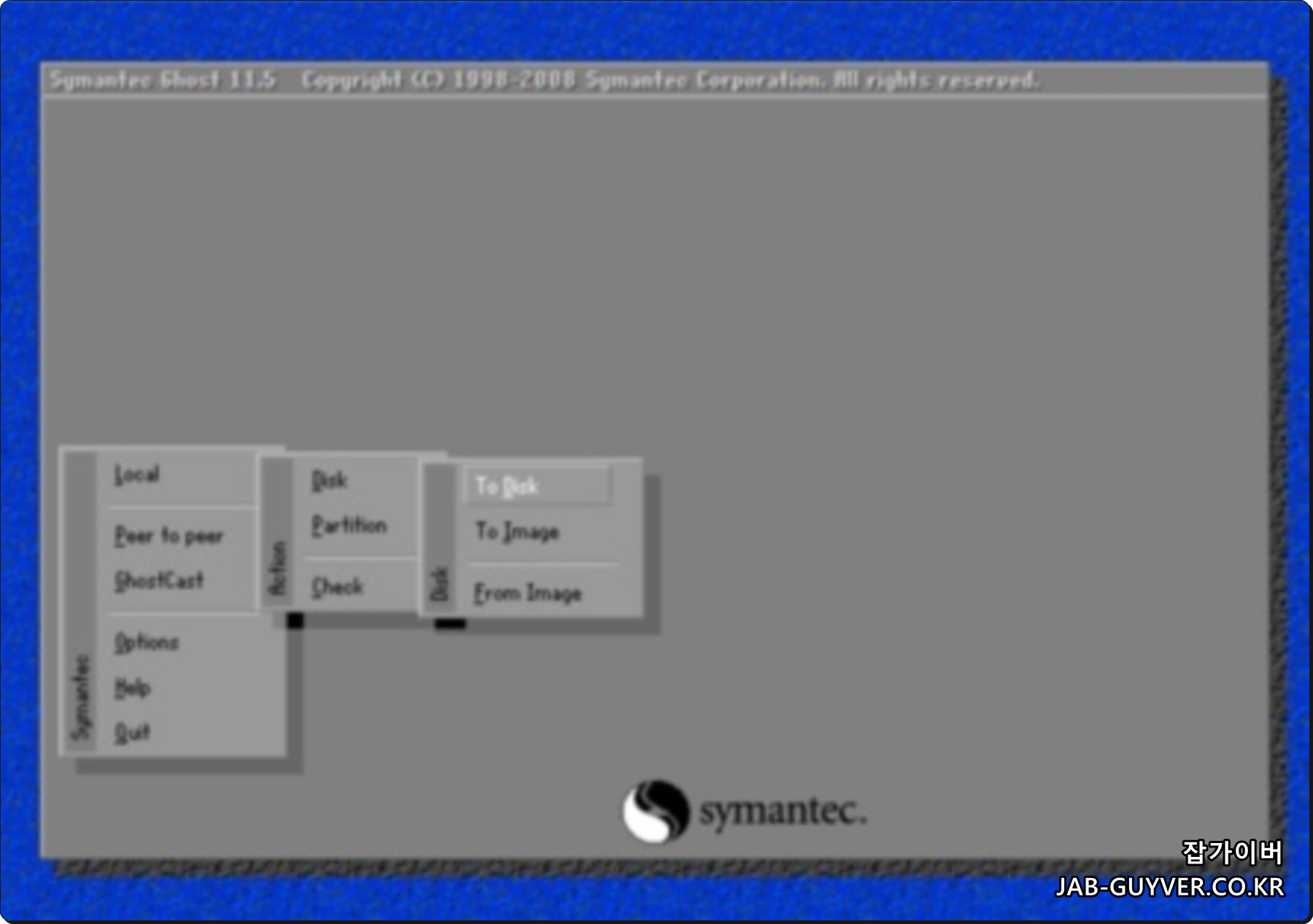 노턴고스트 부팅이 되었다면 디스크 파티션을 이미지로 만들어 설치가 가능하며 Local – Disk (or Partition) – To Image 선택 시 3가지 선택지가 나옵니다.