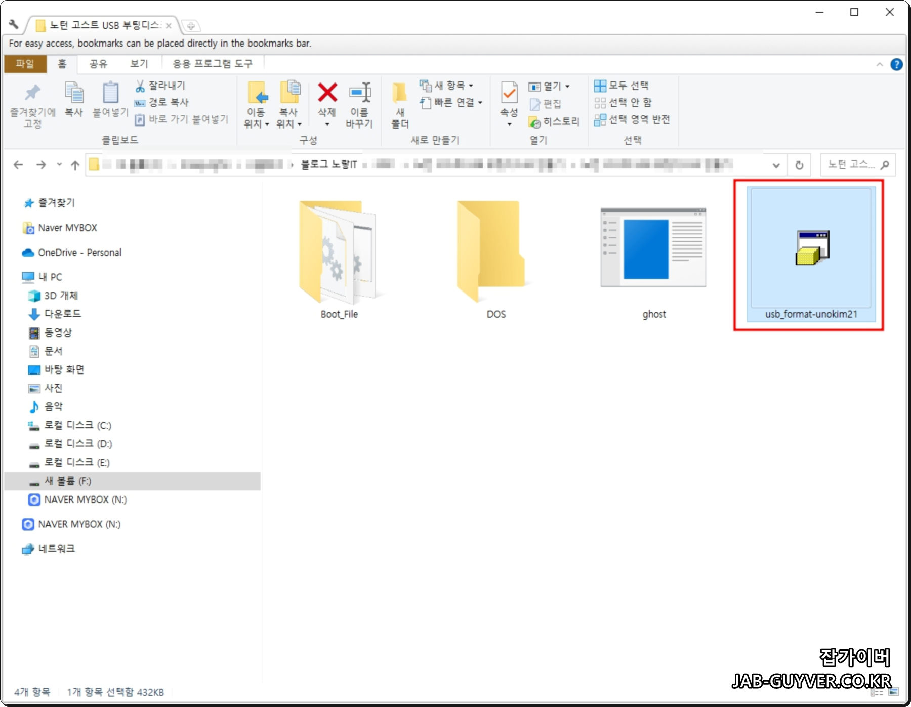 노턴 고스트 USB 부팅디스크 만들기가 완료되었다면 USB에 DOS폴더와 ghost 실행파일을 복사해 넣어줍니다.