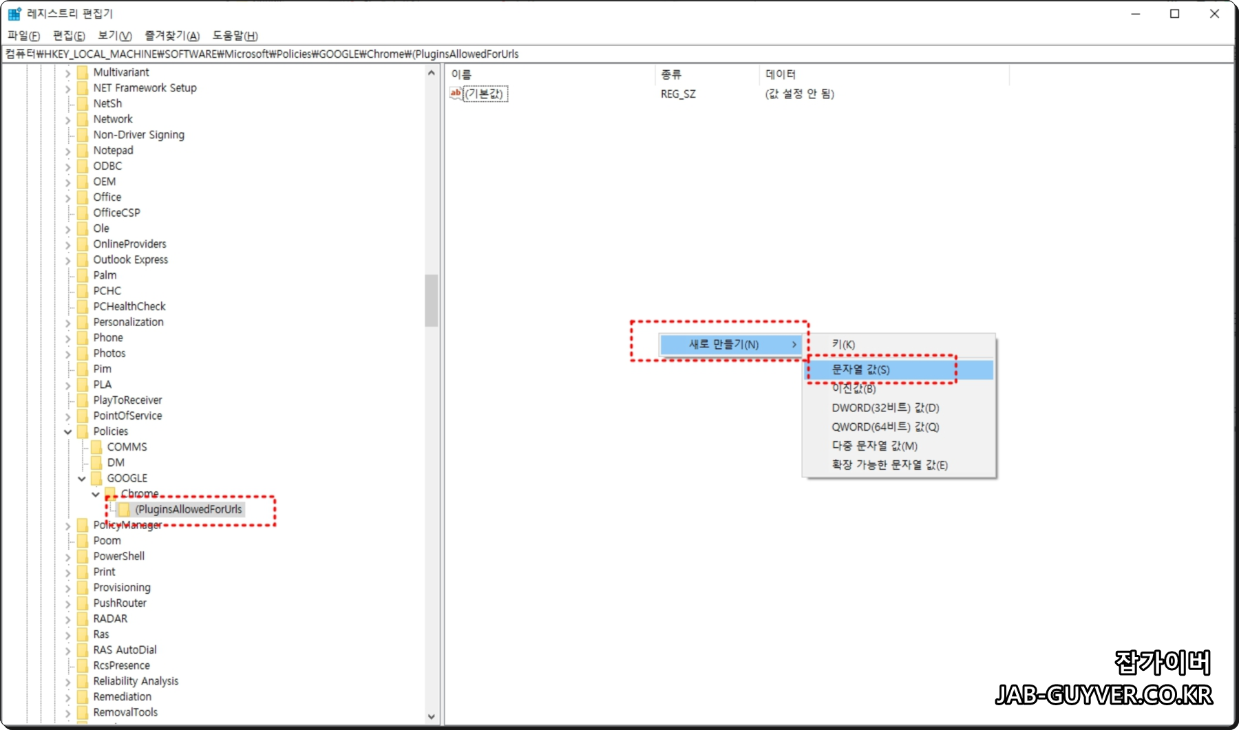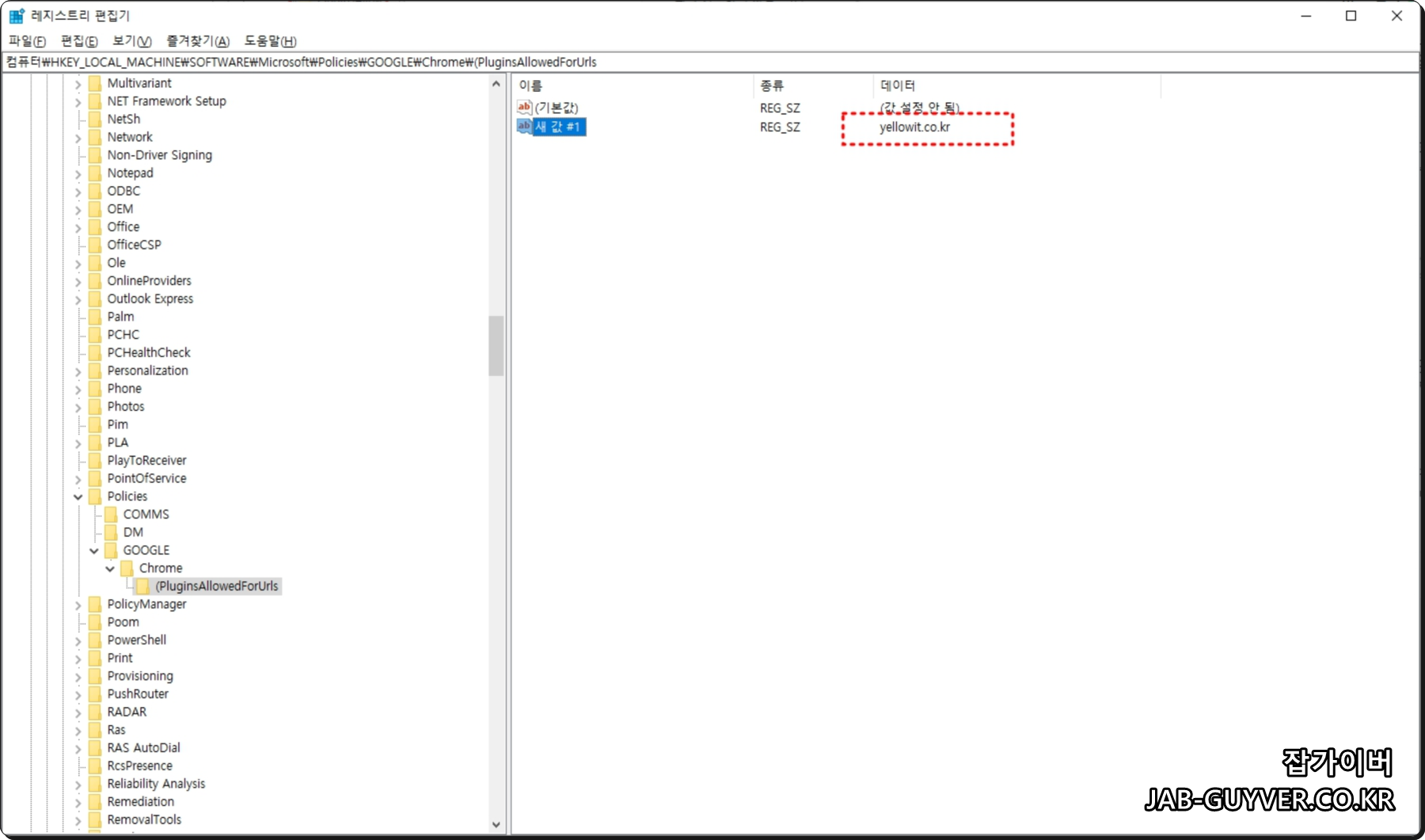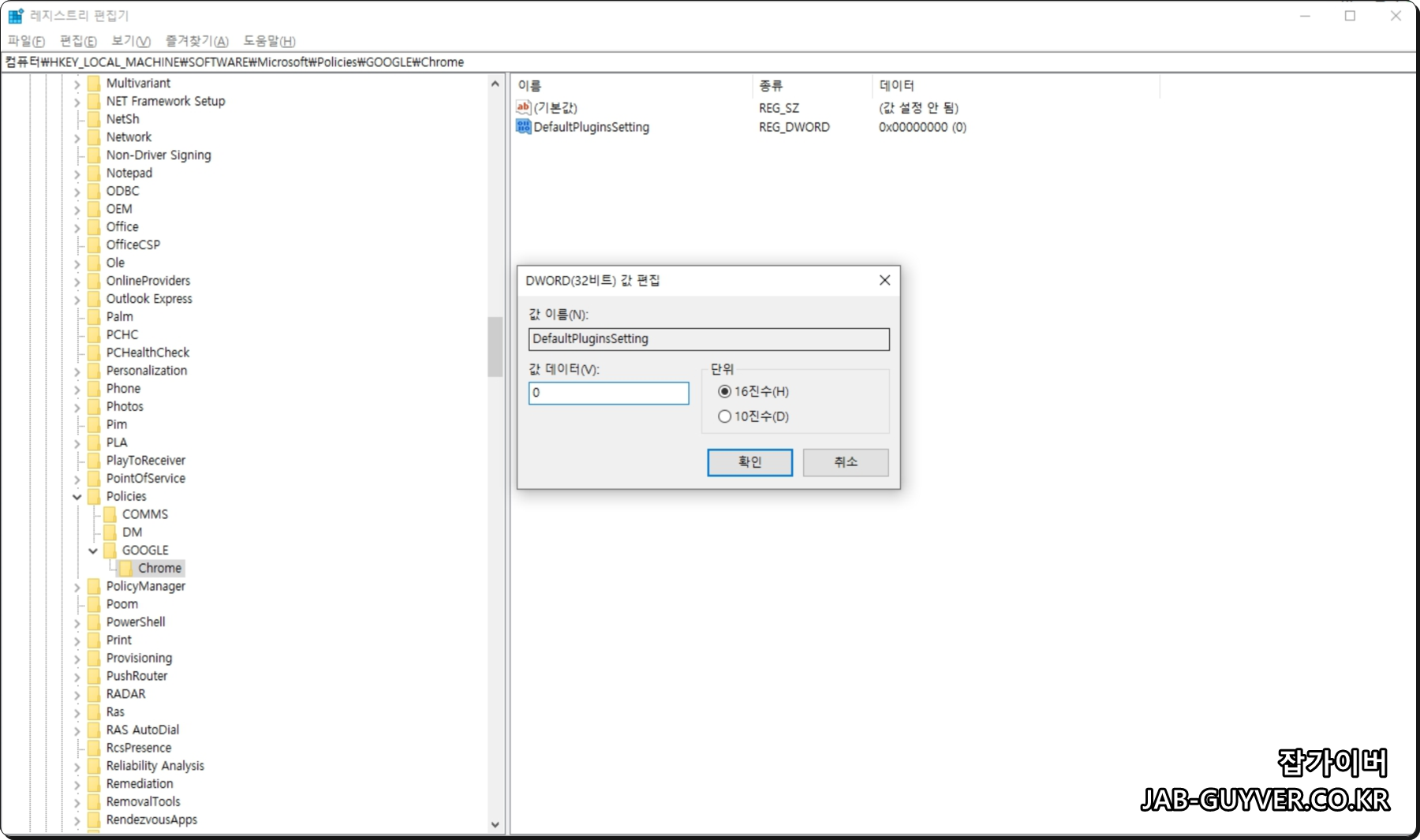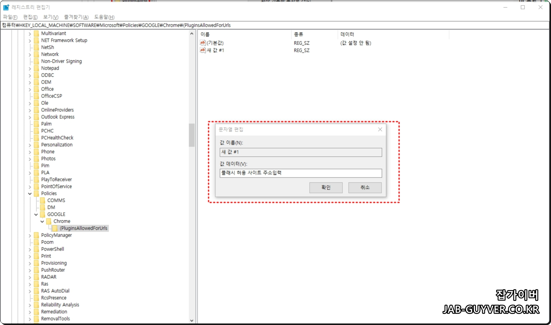 구글 크롬 플래쉬 허용 레지스트리 편집