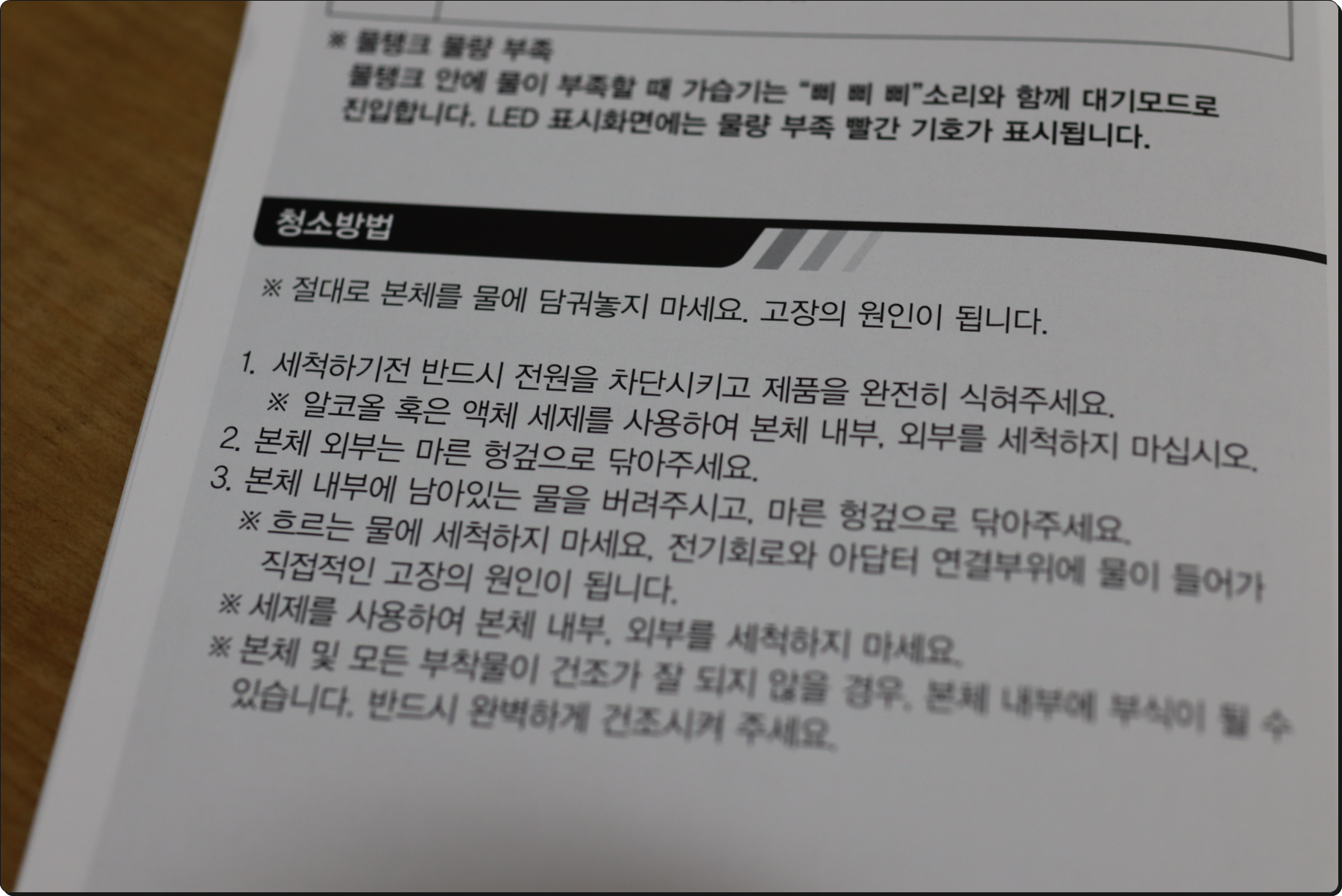 - 가습기 청소시 물이 PCB나 전기 코드에 들어가지 않도록 한다.