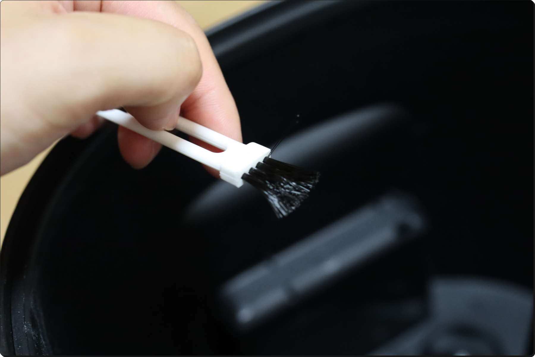 이 때 청소 브러쉬를 통해 구석구석 닦아주면 세척효과가 더욱 올라갑니다.