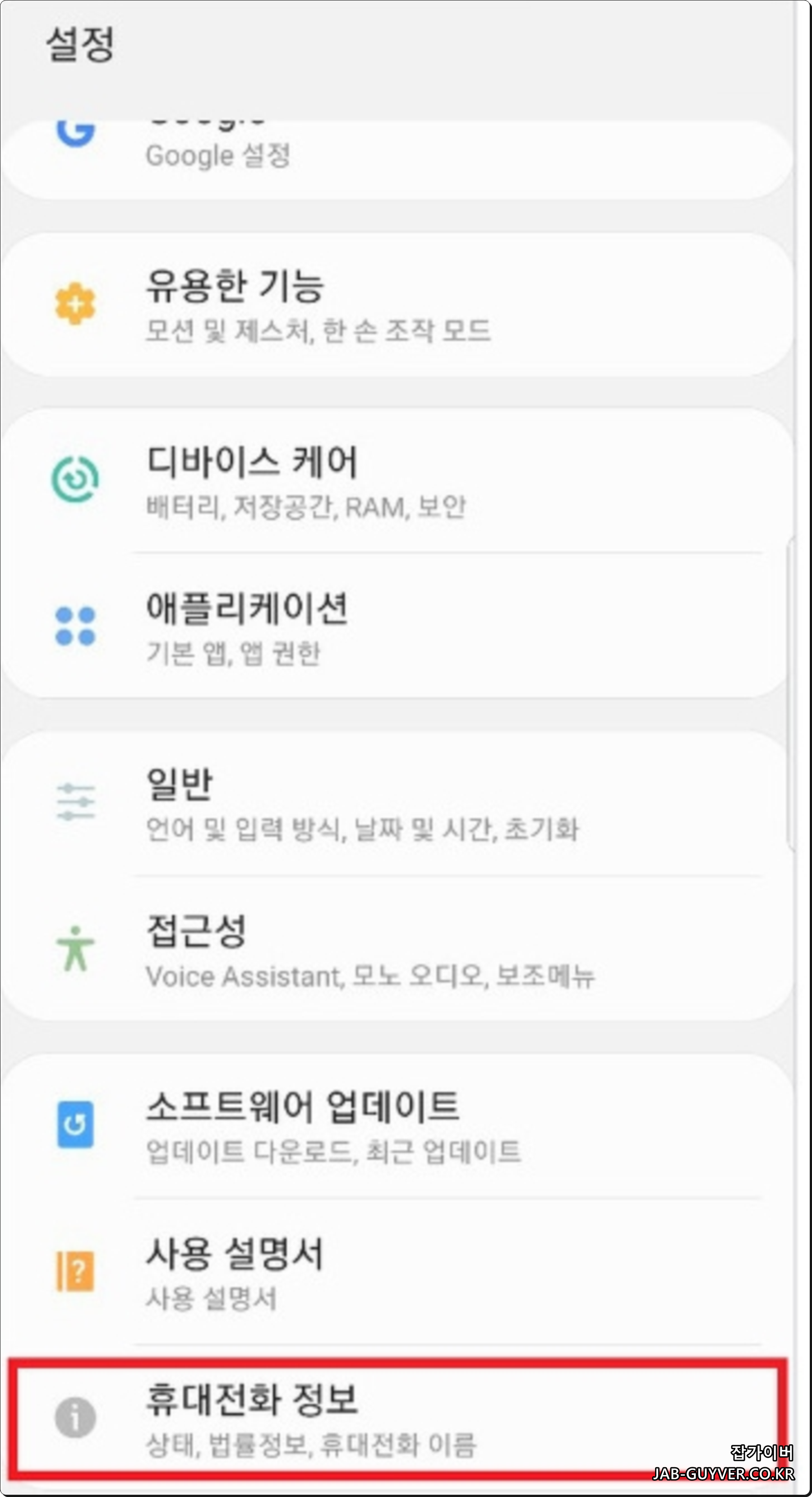 휴대전화 정보 -> 배터리 정보를 선택합니다.