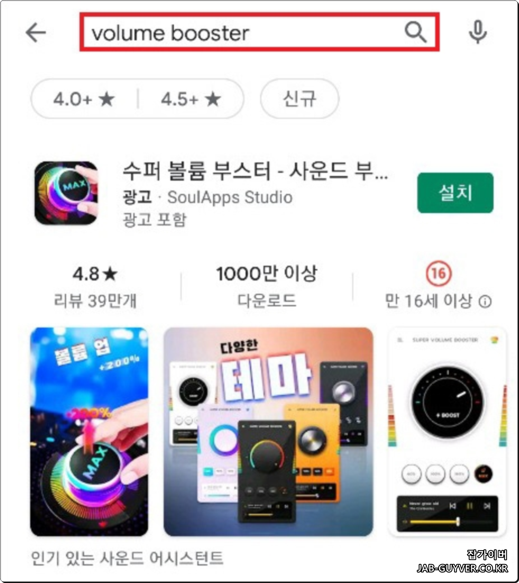 하지만 소리가 너무 크게 들릴 수 있기 때문에 볼륨 소리가 작게 들리는 에어팟 이어폰에서만 사용하기를 권장하며 갤럭시 폰이 아니라면 볼륨부스터 "Volum Booster"앱을 통해 사운드 크기를 조절할 수 있습니다.