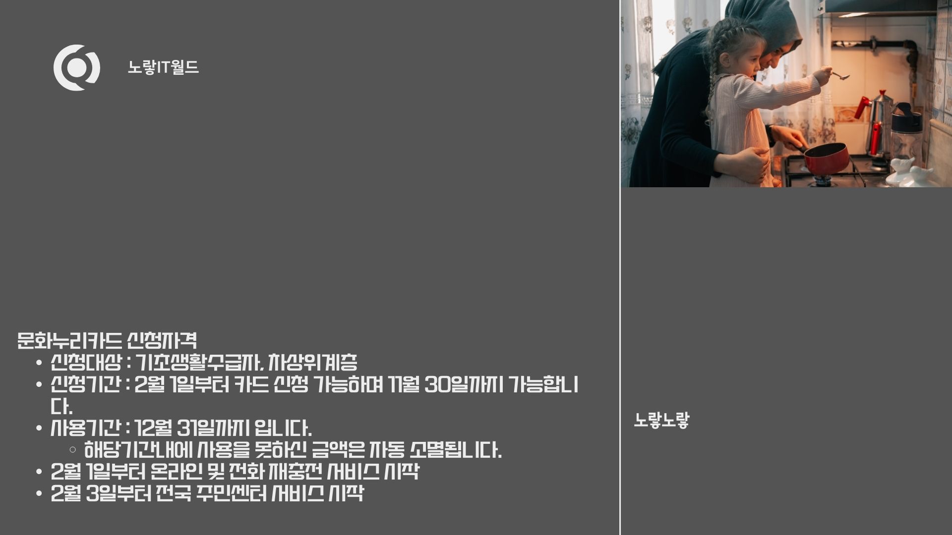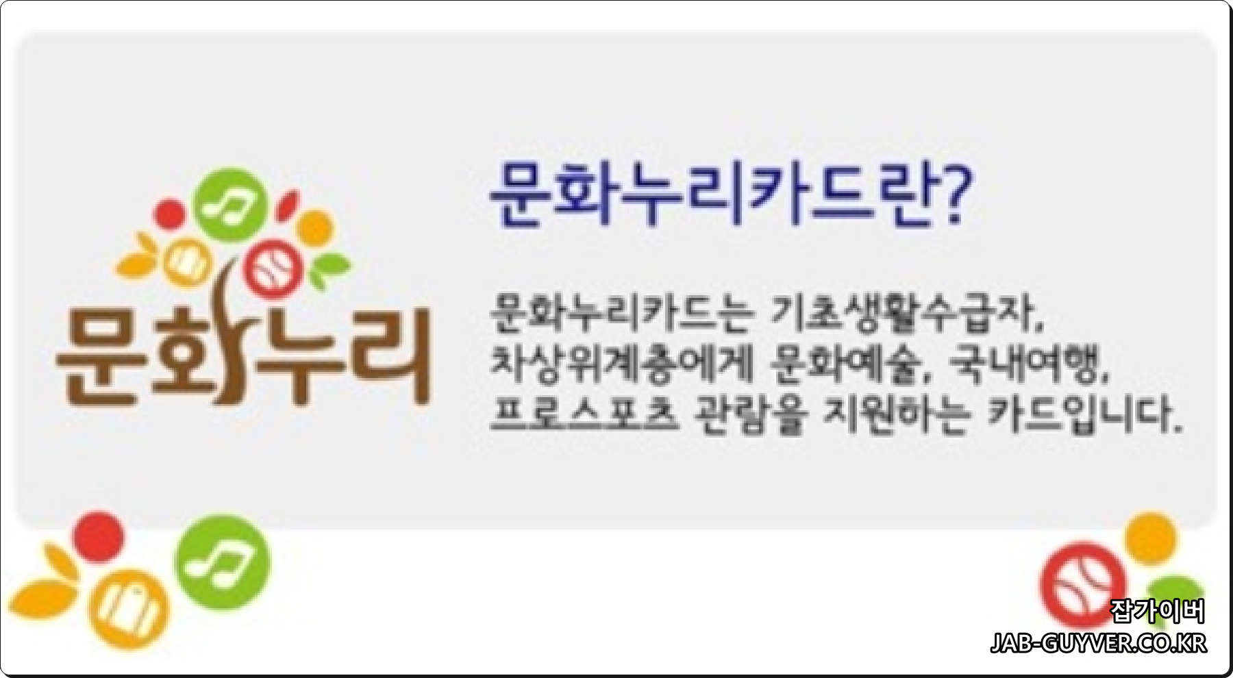 경제적 여건이 어려워 문화생활에 많은 부분을 할애하지 못하는 가구들을 위해 정부에서는 문화복지정책의 일환으로 문화누리카드를 발급하고 있습니다. 해당 카드는 기초수급자 및 차상위계층을 대상으로 하여 매년 일정 금액의 문화비를 지원하는 제도로서 대한민국 모든 국민이 해당되지 않지만 모두가 문화생활을 즐기는 대한민국을 만들기 위해 신청대상부터 지원금액, 카드 발급방법과 사용처 조회하는 방법까지 자세하게 알아보도록 하겠습니다.