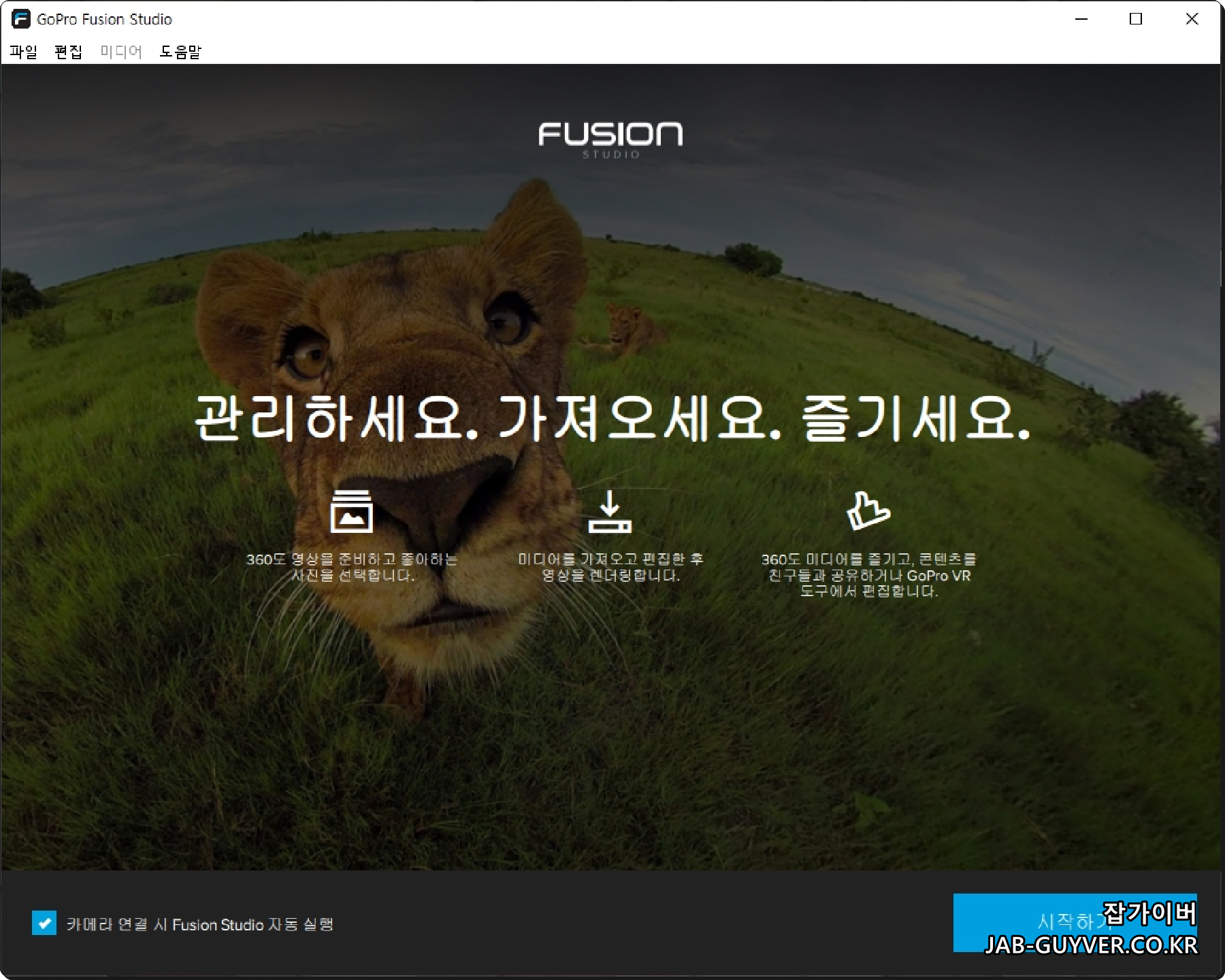 고프로 카메라를 컴퓨터에 연결 시 자동으로 Fusion Studio가 실행되도록 설정 할 수 있습니다.
