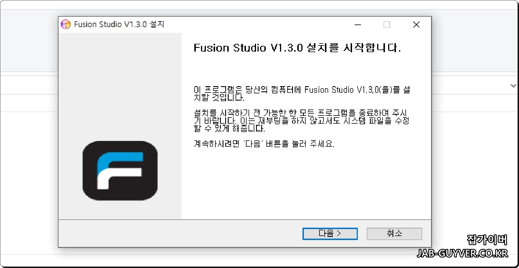 새롭게 출시한 퓨전스튜디오로 대체되어 프로그램을 다운로드 후 압축을 해제합니다.