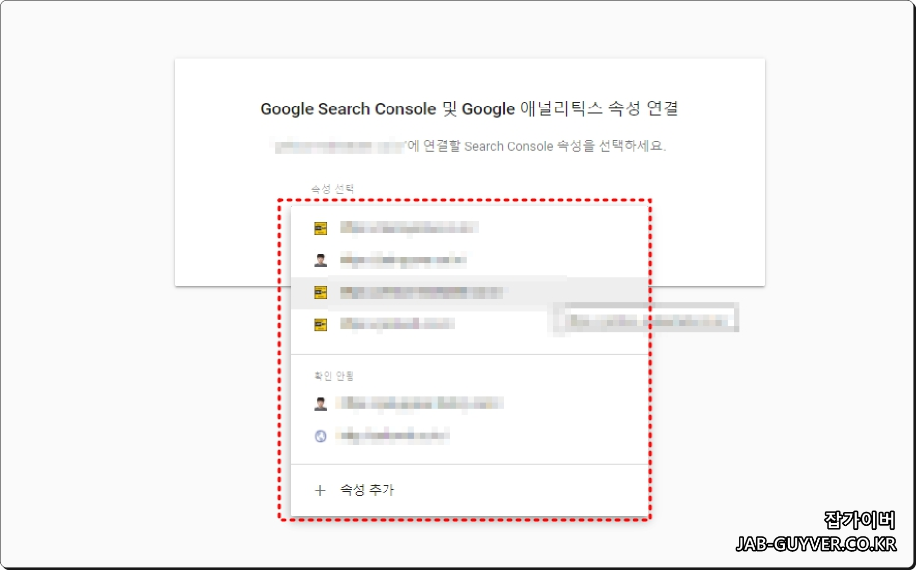 구글 서치콘솔과 연동할 계정을 선택합니다.