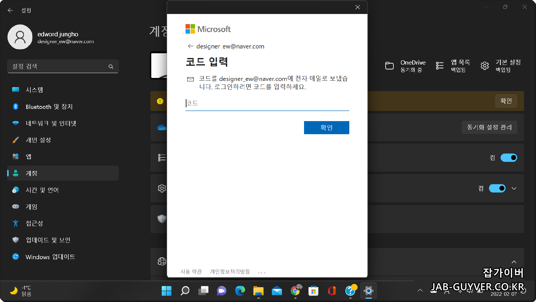 본인 확인 과정에서는 등록된 이메일로 인증 코드가 도착하며, 해당 코드를 입력하면 이 PC와 계정이 서로 연결됩니다.