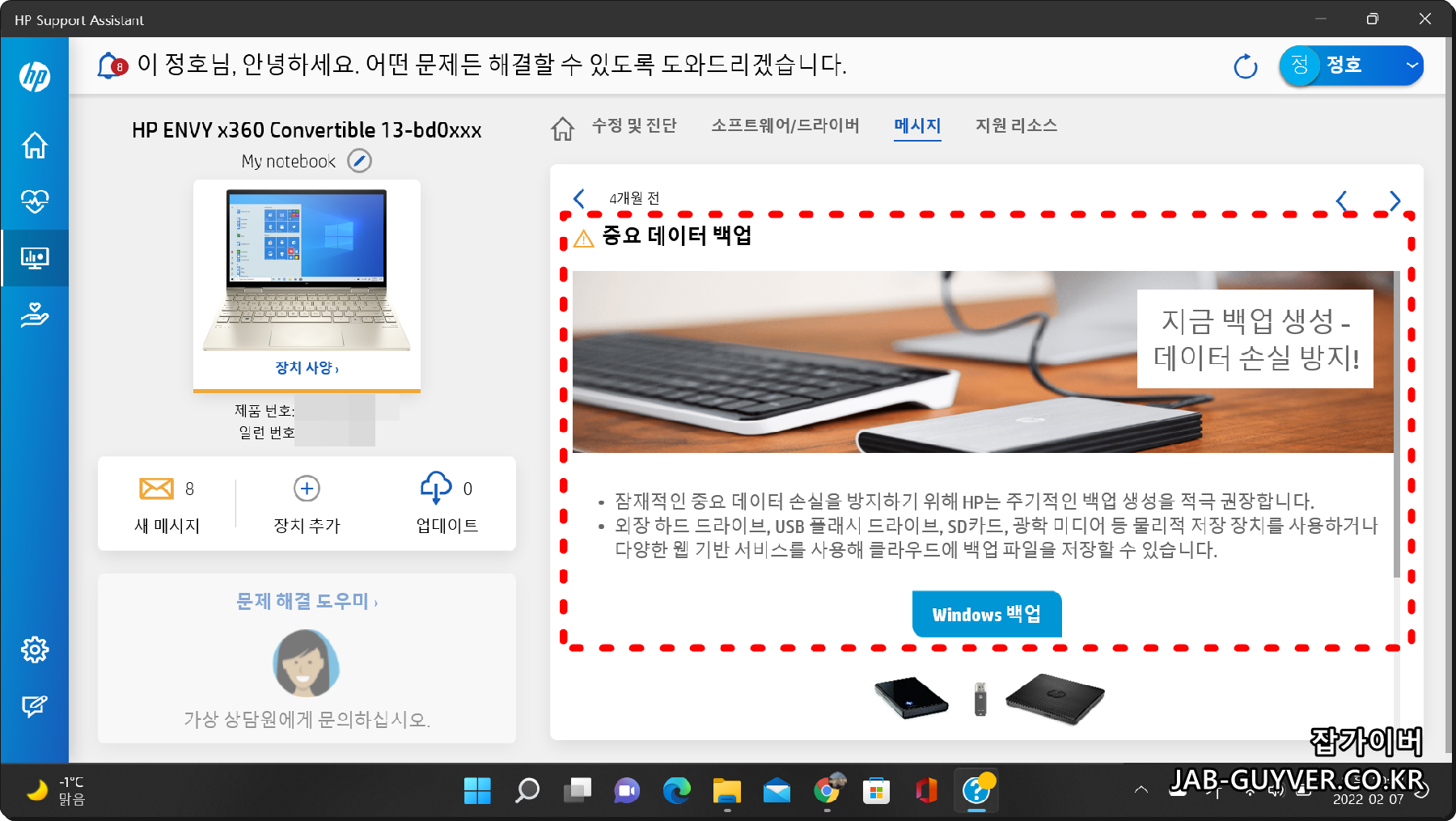 최근에 HP Envy X360 컨버터블 노트북으로 교체하면서 10년 가까이 된 예전 노트북과 비교해 보면 전반적인 성능도 많이 올라갔지만, 특히 HP Support Assistant가 꽤 많이 달라졌다는 느낌이 들었습니다.