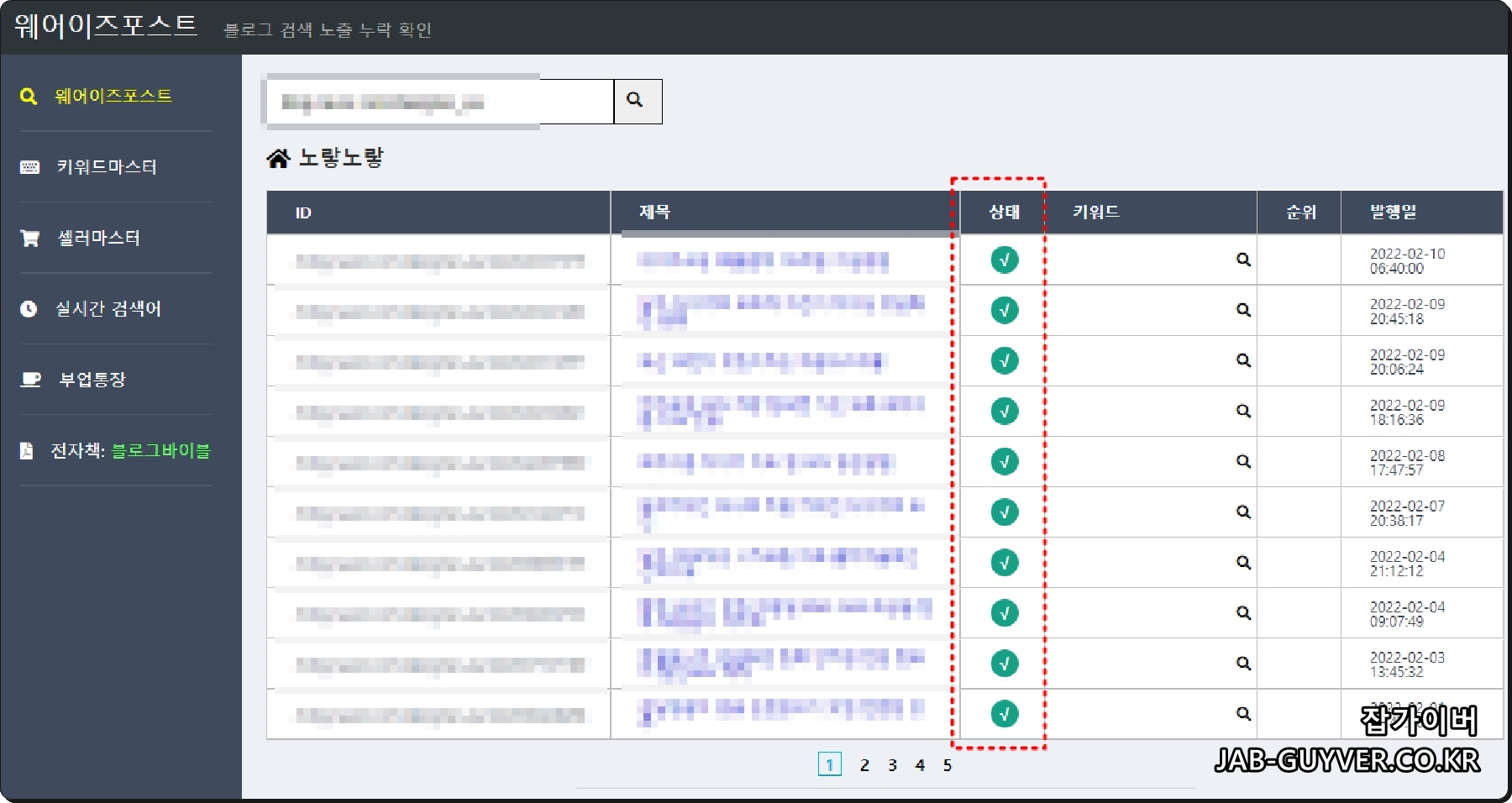 웨어이즈포스트를 통해 자신의 네이버블로그 주소를 입력하면 자신의 포스팅 된 글들이 네이버에 제대로 노출되는지 확인할 수 있습니다.