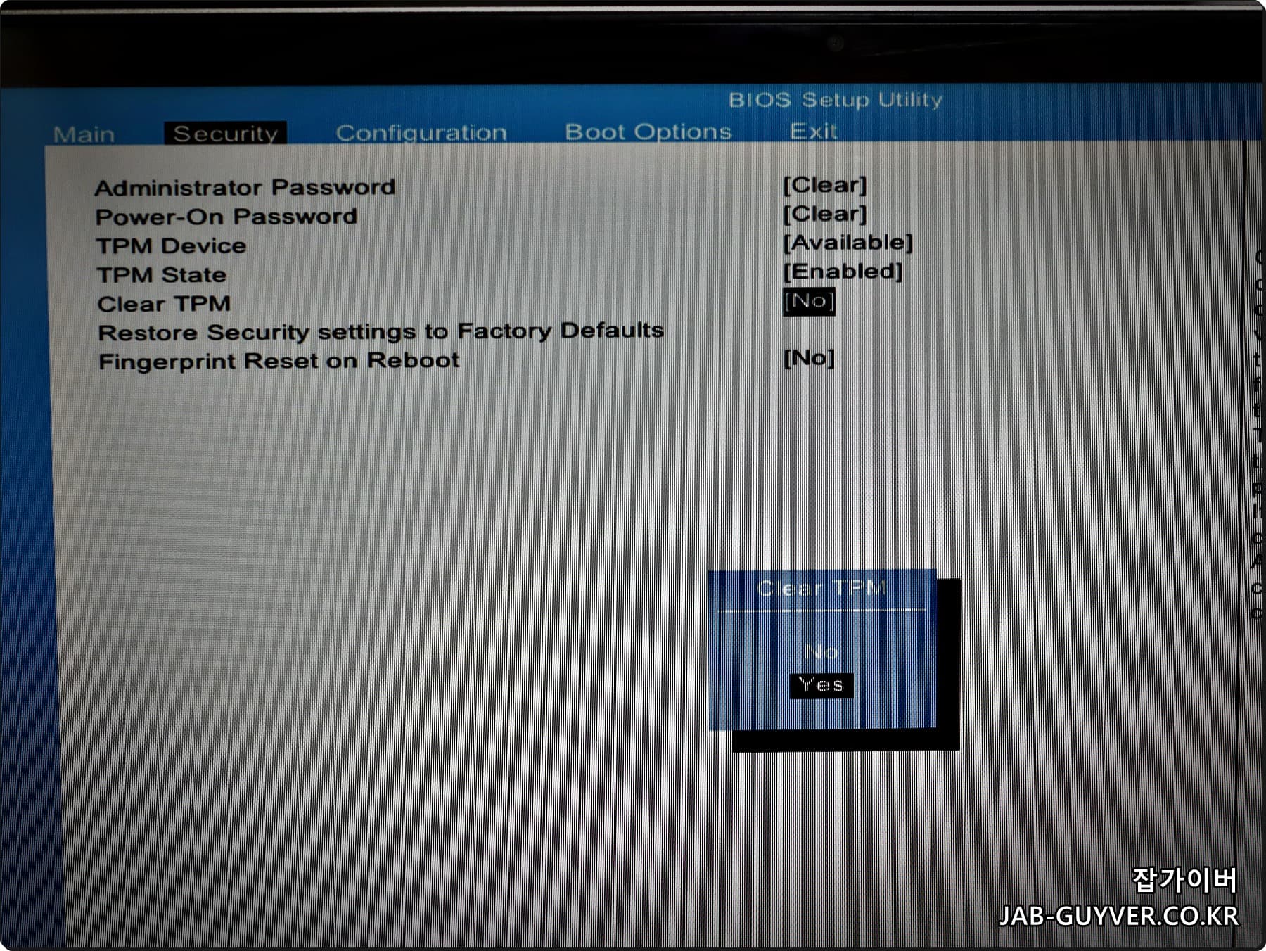 TPM 설정을 정리하려면 Clear 항목으로 TPM 초기화가 가능합니다. 다만 암호화/인증서/조직 정책이 얽혀 있는 장비는 작업 전후 영향이 생길 수 있어, 개인용과 업무용을 같은 감각으로 다루지 않는 편이 좋습니다.