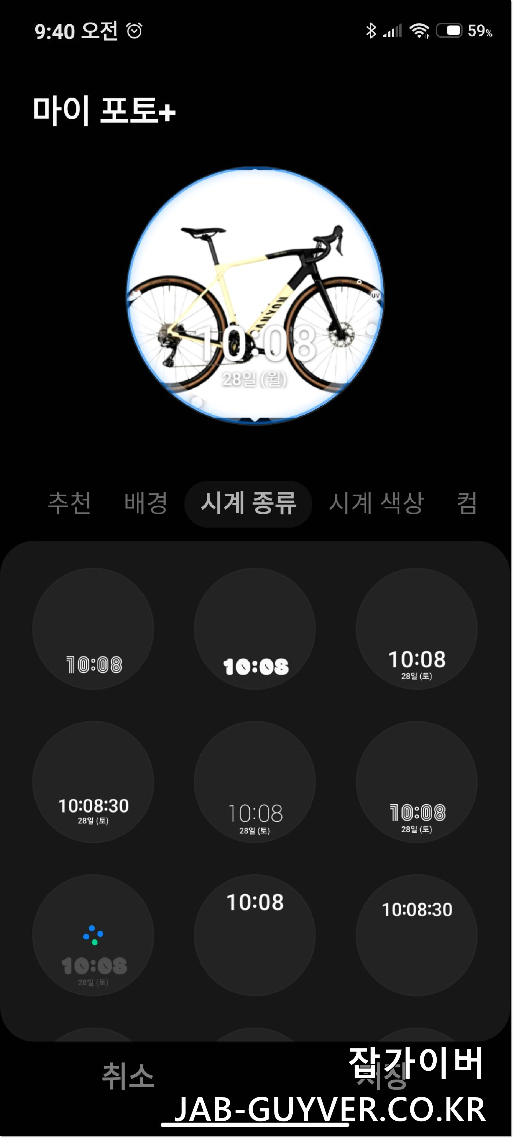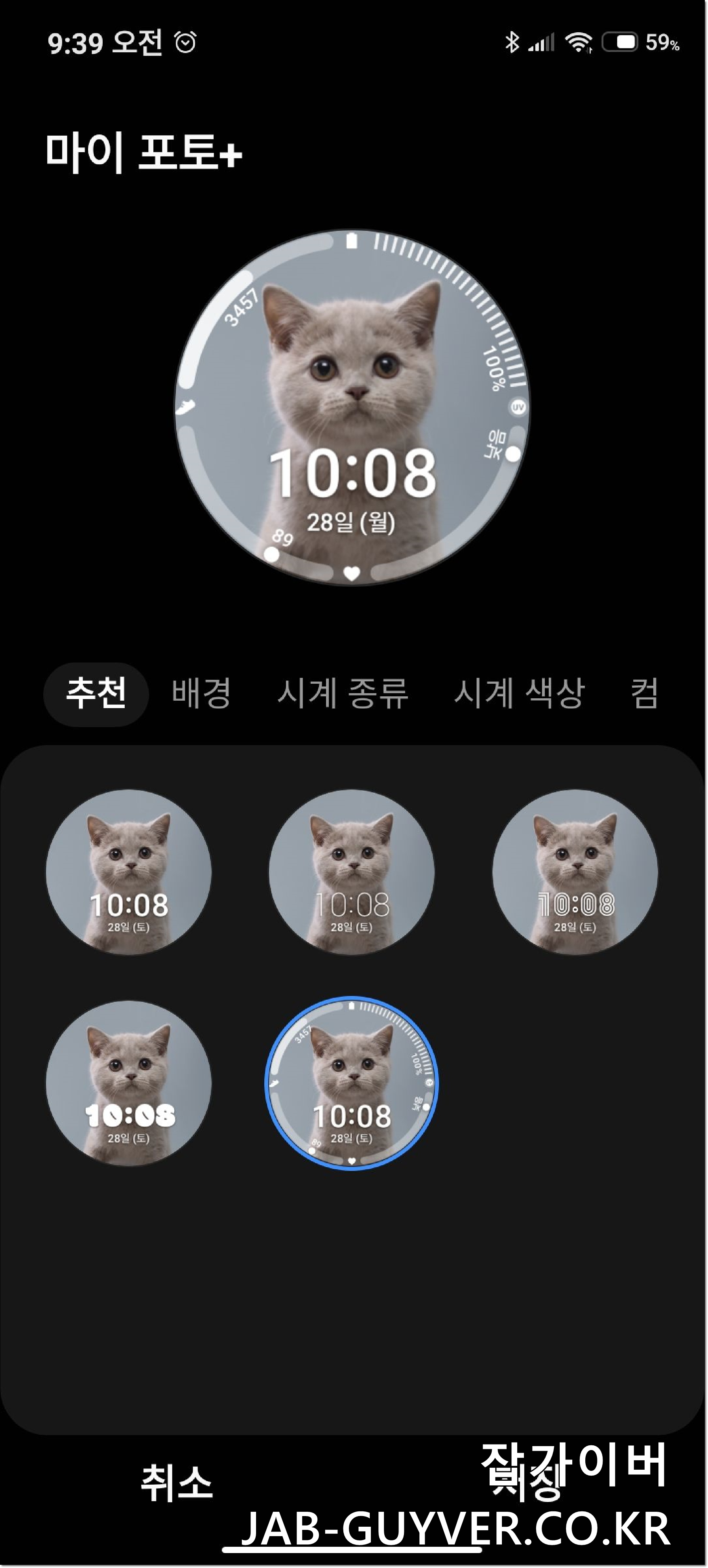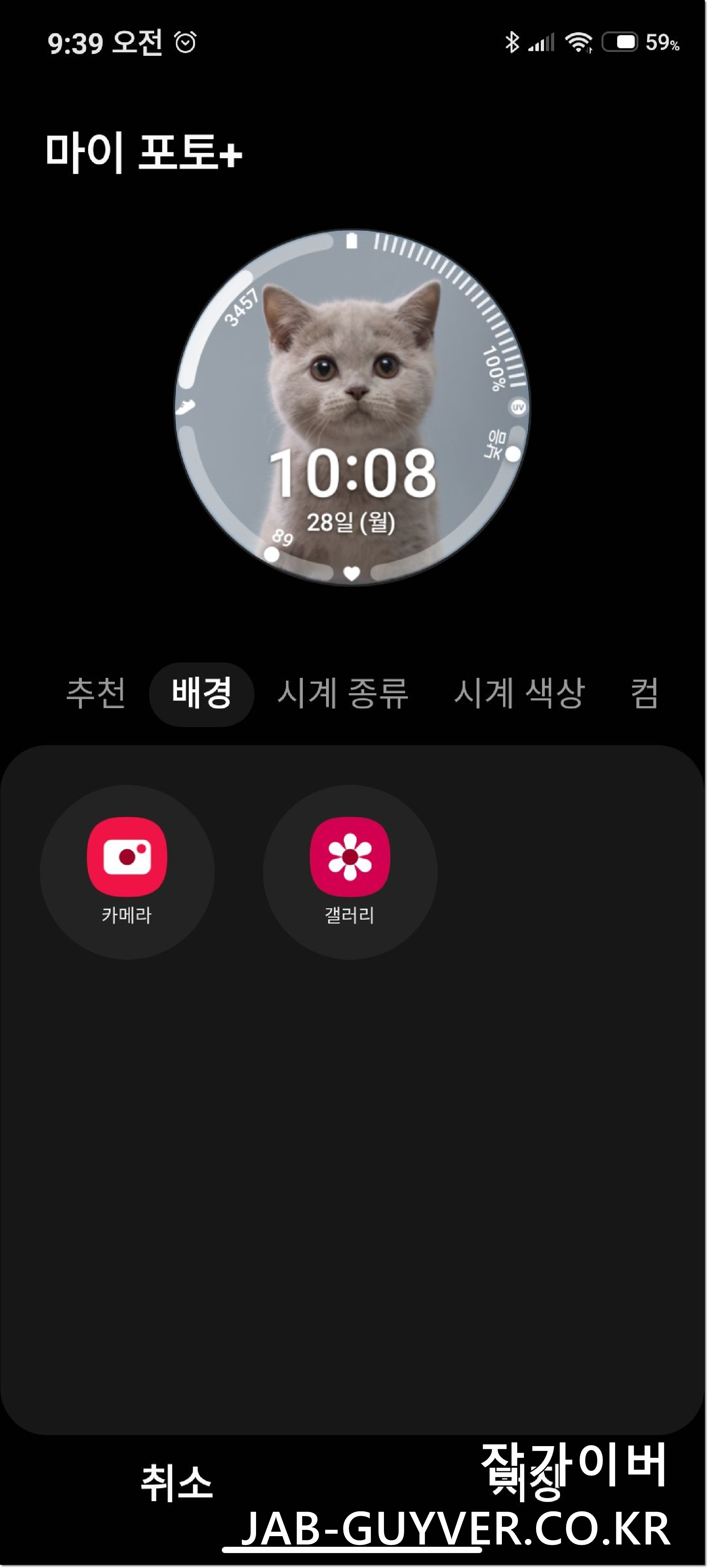 워치페이스에서 마이포토+를 통해 핸드폰에 있는 사진이나 GIF 움짤등을 이용해 갤럭시워치 배경화면으로 사용할 수 있습니다.
