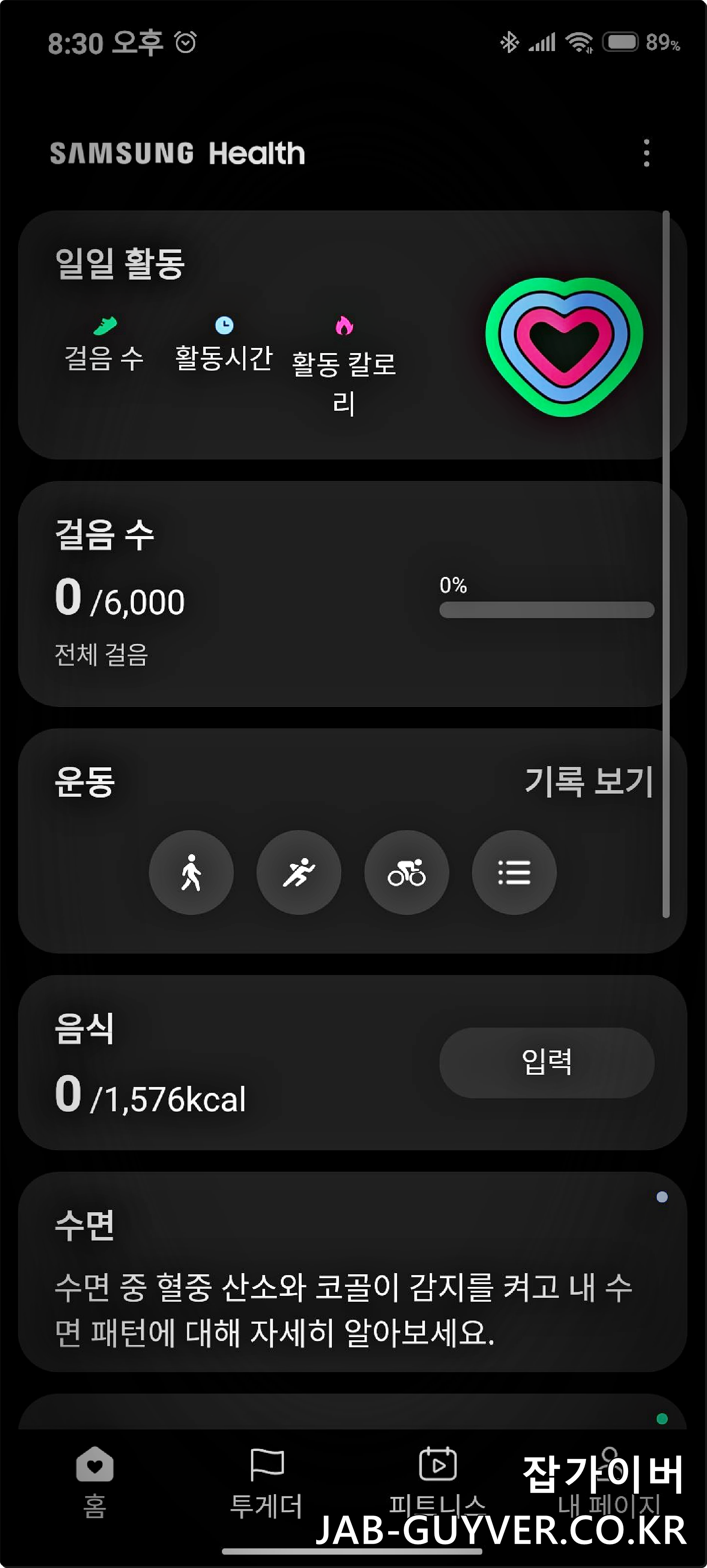 삼성헬스 앱을 통해 수면이나 목표 걸음수, 운동 등을 기록하고 친구들과 경쟁할 수 있습니다.