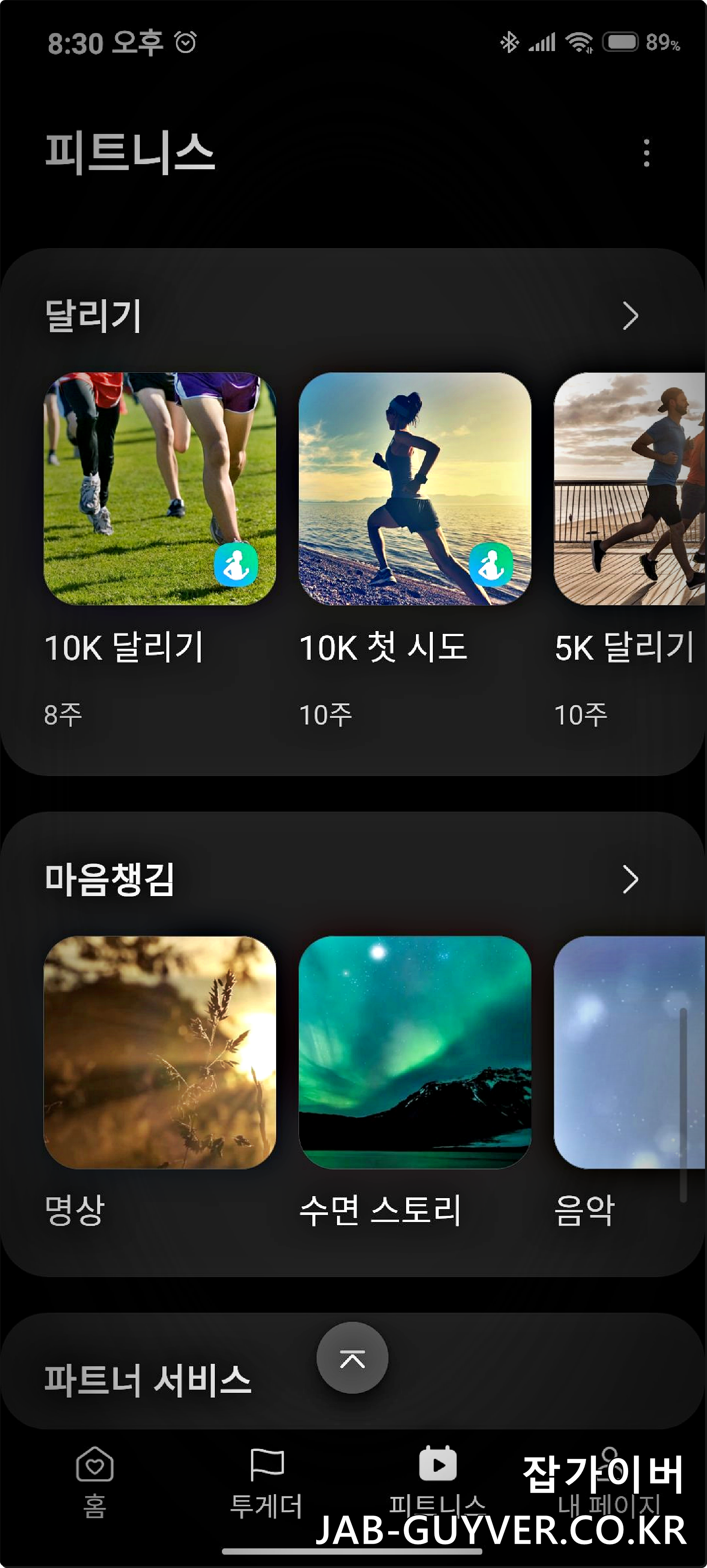 피트니스에서 관심분야의 체중감소, 근육 인터벌, 밸런스, 지구력 등 다양한 운동을 제공하며 이를 갤럭시 워치를 착용하고 운동을 할 수 있습니다.