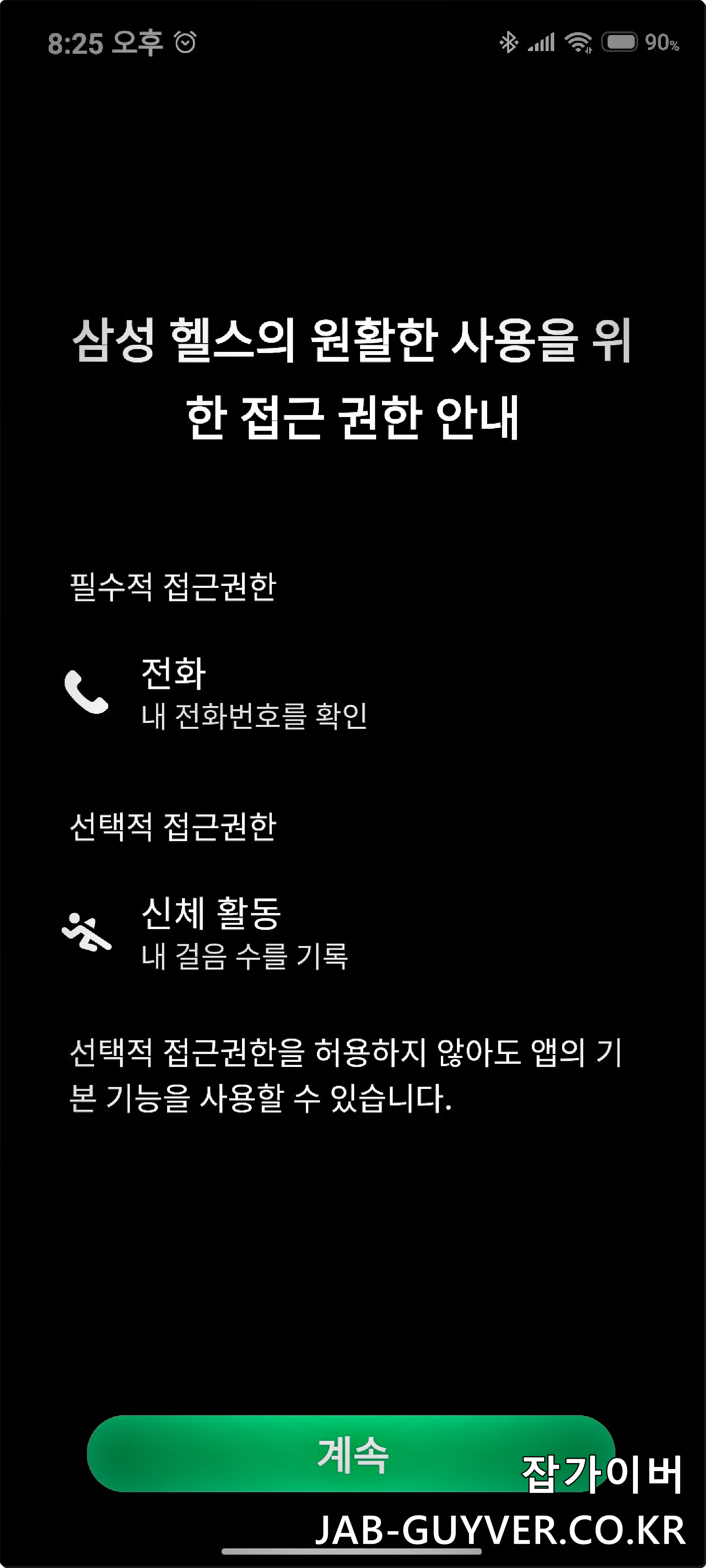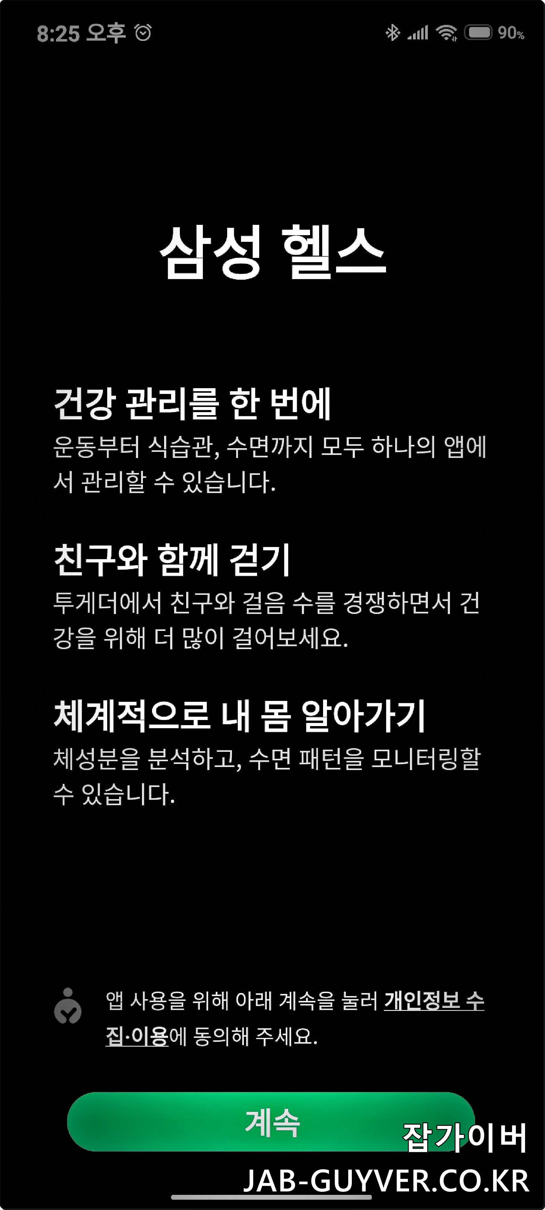 안드로이드 앱 기준 Samsung Health "삼성헬스"를 다운로드하여 설치합니다.