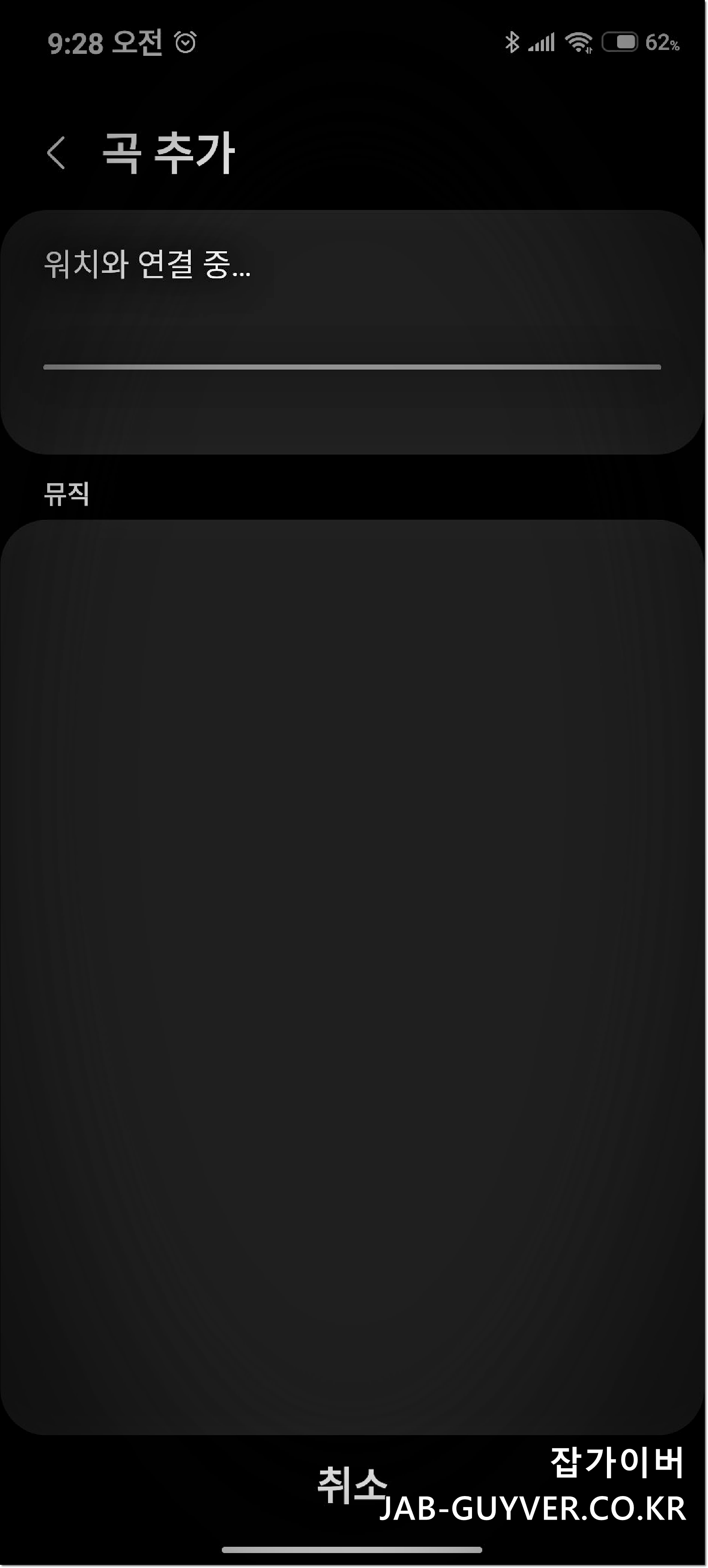 갤럭시워치의 화면에서 곡을 추가하기 위한 권한을 허용합니다.