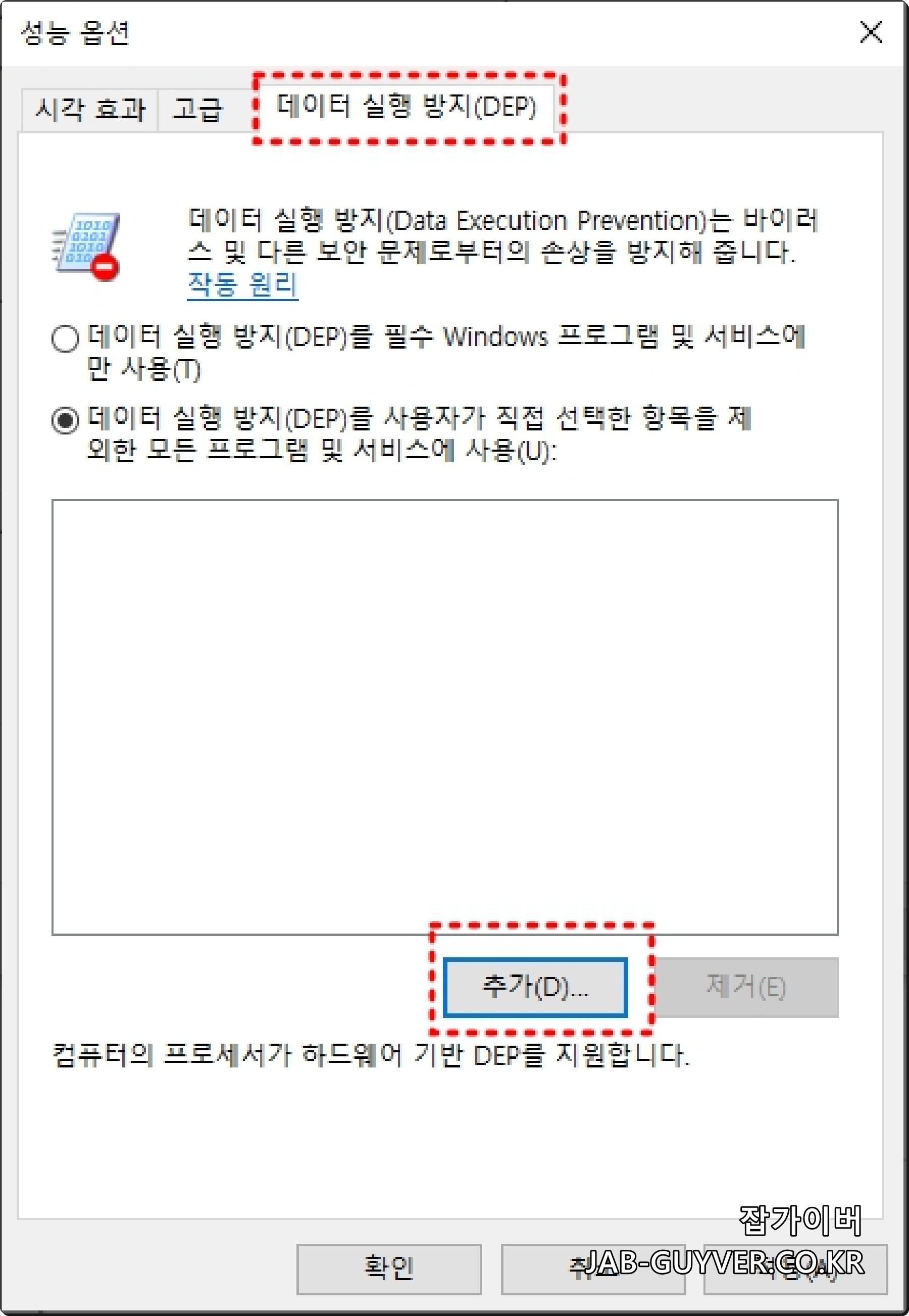 - "데이터 실행방지 DEP" 탭을 클릭합니다.