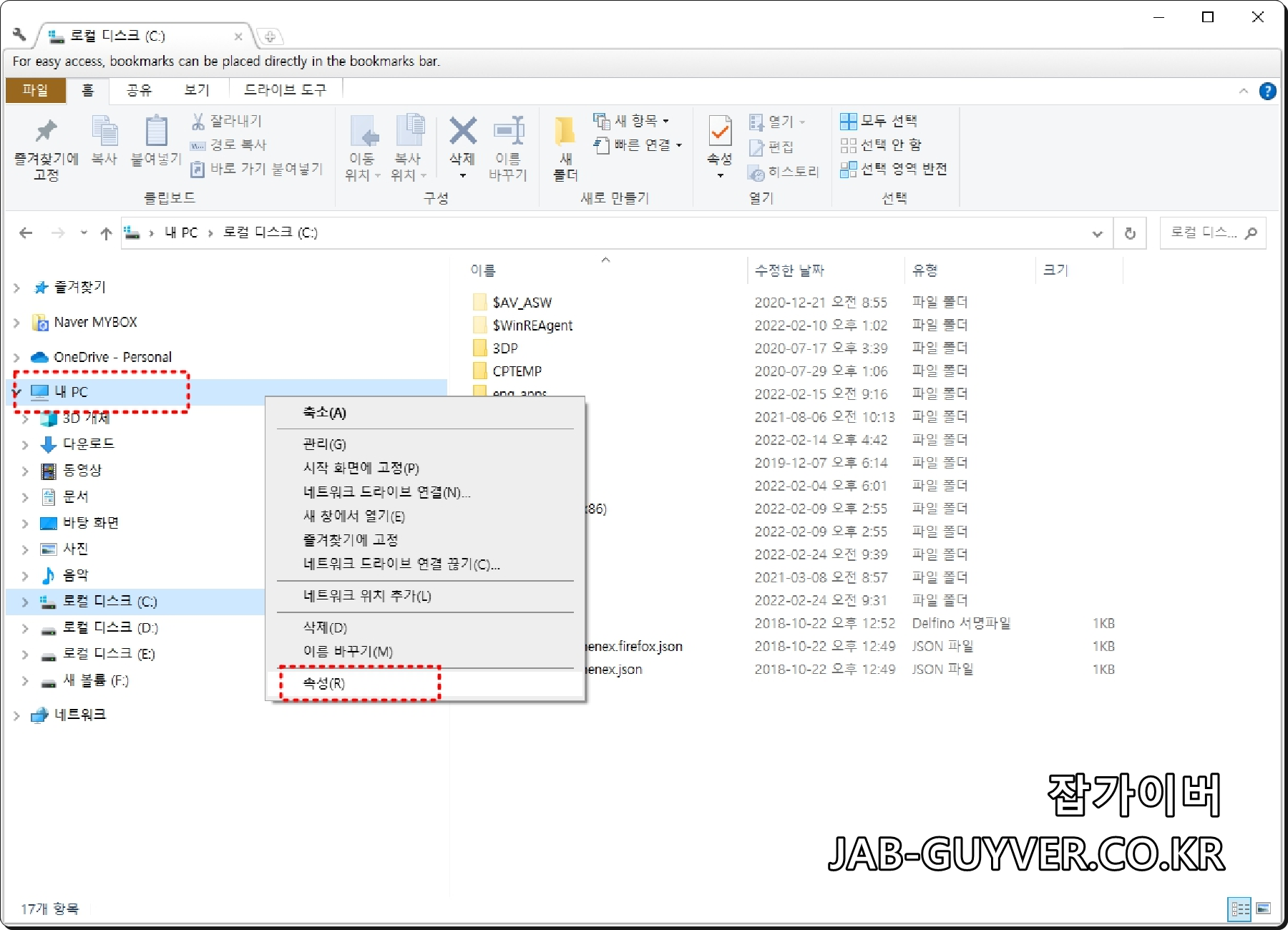 - 바탕 화면에서 내 컴퓨터를 마우스 오른쪽 버튼으로 클릭하고 속성을 선택합니다.
