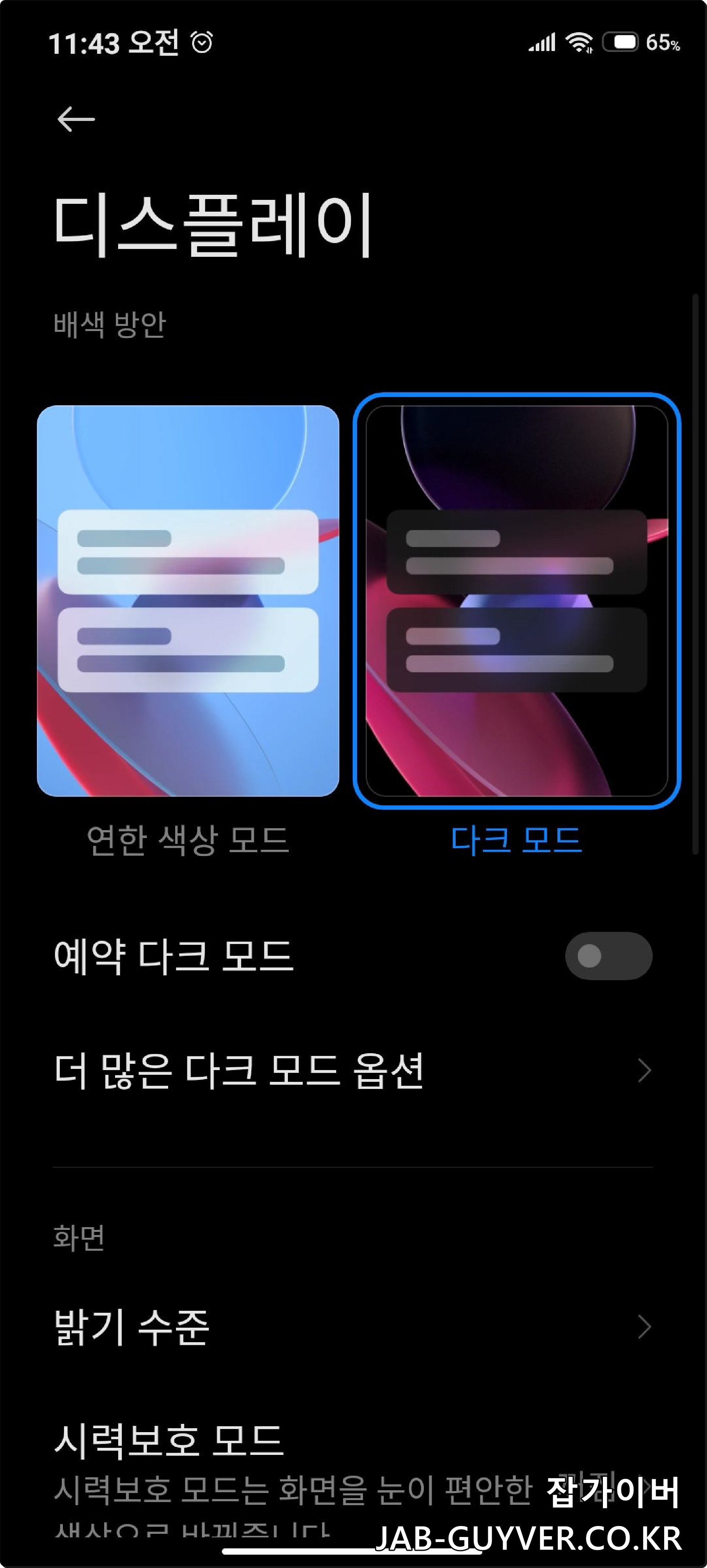 다크 모드로 디스플레이 전력 절약